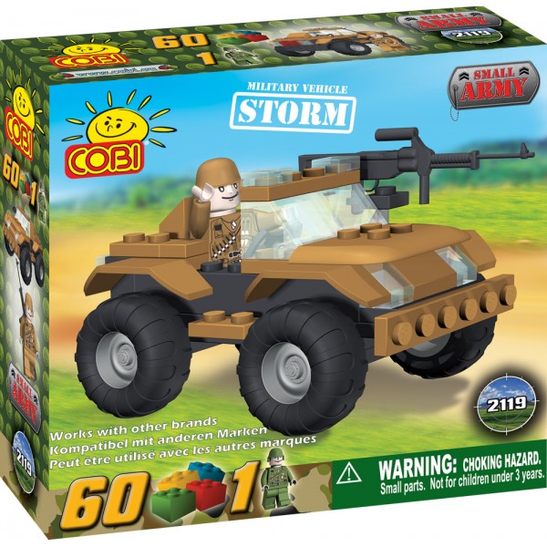 Pojazd militarny Storm jest przeznaczony do zadań w trudnym terenie. Bez niego nie obejdzie się żadna bitwa. Do pojazdu dołączona jest jedna figurka dzielnego żołnierza.