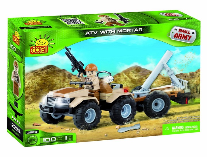 Cobi Small Army Pustynny Quad z Moździerzem 2224 to pojazd zbudowany specjalnie na piaszczyste warunki. Odporny na burze piaskowe i palące promienie słońca stanowi doskonały środek transportu w trudnych warunkach. Siedzący w quadzie żołnierz przewozi umieszczony na przyczepie moździerz. Oficer Małej Armii musi dotrzeć do najbliższej bazy sprzymierzonych wojsk.