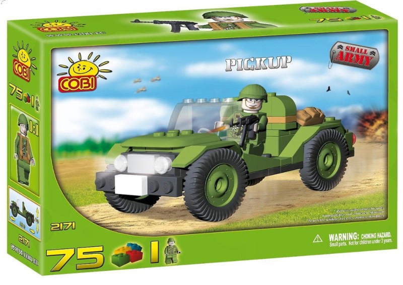 Wojskowy pickup to komplet klocków tworzących wojskowy samochód, który odpowiedzialny jest za przechwytywanie dostaw. Do pojazdu dołączona jest jedna figurka dzielnego żołnierza. Klocki rozwijają zdolności manualne oraz wyobraźnię dziecka. Seria pozwala na zbudowanie własnej bazy wojskowej.