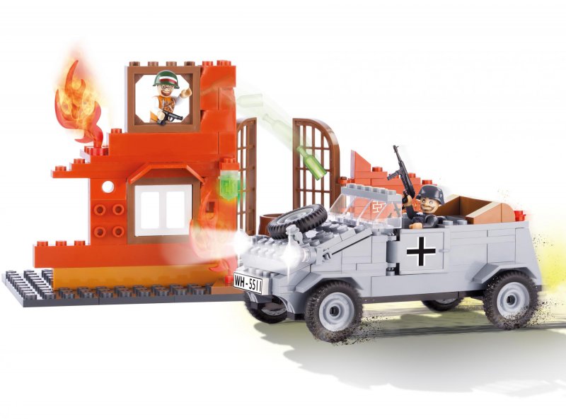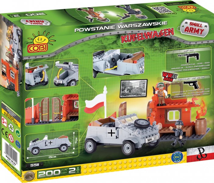 Small Army Kubelwagen to zestaw upamiętniający Powstanie Warszawskie. W zestawie znajdują się 2 figurki: żołnierza oraz powstańca. Dodatkowo zabawę urozmaici samochód terenowy, pistolet Vis i karabin MP40.