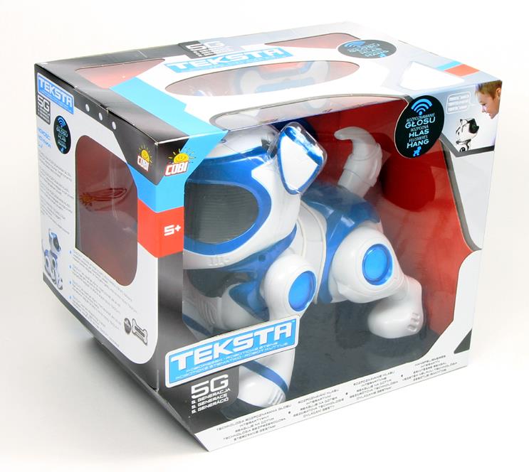 Podejmij wyzwanie, jakim jest tresura najnowszej generacji robota pieska Teksta VR. W zestawie znajdziesz: interaktywnego RoboPieska, piłeczkę do zabawy oraz kość do karmienia. Teraz piesek Teksta ma niesamowitą technologię rozpoznawania głosu. Dzięki temu piesek reaguje na głos, słucha i rozumie Twoje komendy. Ponadto, piesek reaguje również na dotyk, gestykulację, dźwięk, a nawet światło. RoboPiesek, chodzi, siada, porusza uszami i głową. Potrafi także szczekać, skomleć i za pomocą ekspresji oczu okazywać uczucia. Zasypia w nocy, płacze, gdy jest pozostawiony bez opieki zbyt długo. Specjalnie dla Ciebie wykona swój popisowy numer, jakim jest salto w tył.
