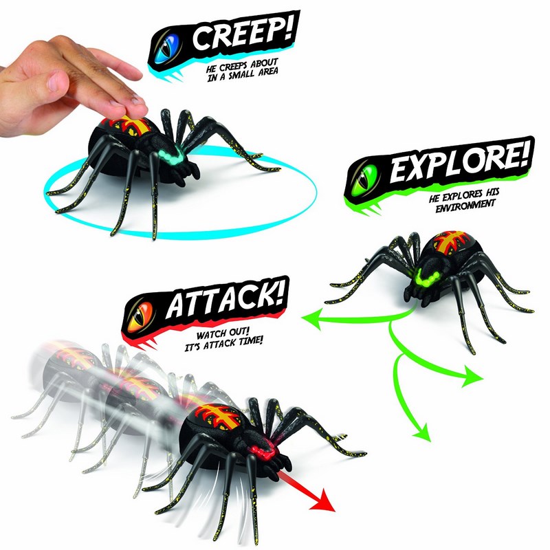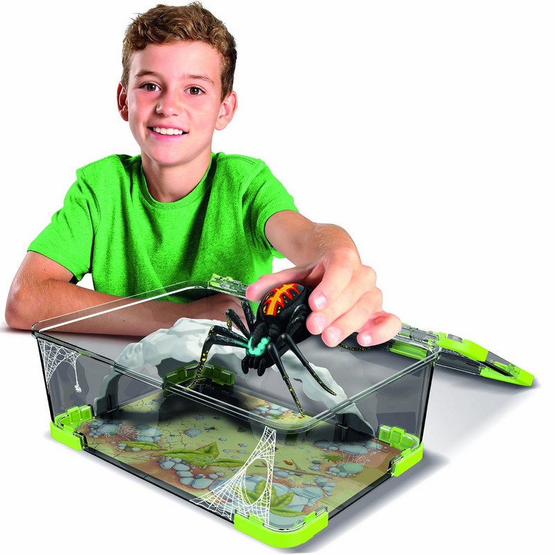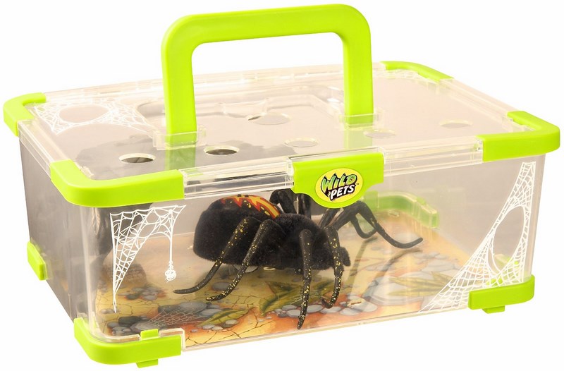 Terrarium z wygodnym uchwytem do przenoszenia w dowolne miejsce zabawy. Zabierz go ze sobą, aby wzbudzał strach i zachwyt znajomych. Czy potrafisz oswoić pająka? Spróbuj!Podnieś go i pogłaszcz! Ostrożnie! Wygląda bardzo realistycznie i reaguje jak prawdziwy! Przygotuj się na krzyki i dziki strach Twoich przyjaciół! Zwariowana zabawa! Twój dotyk kontroluje jego zachowanie. Pająk pełza i skrada się, bada teren, a nawet atakuje na Twój rozkaz.