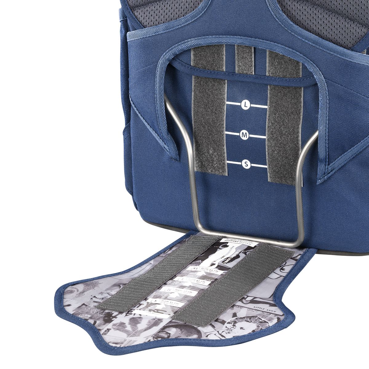 - Górna regulacja szelek: plecak jeszcze lepiej trzyma się pleców, np. przy pochylaniu się, jeździe na rowerz, rolkach