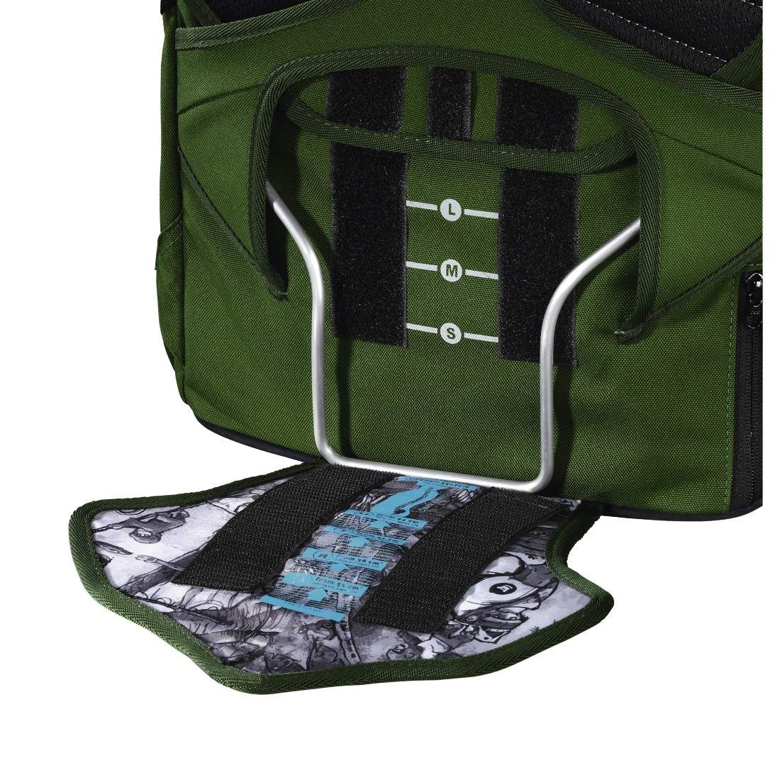 - Wyściełane szelki w kształcie litery S zwiększające ergonomię noszenia, nie uciskają ramion