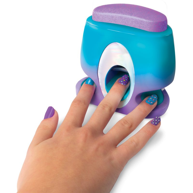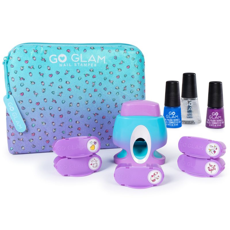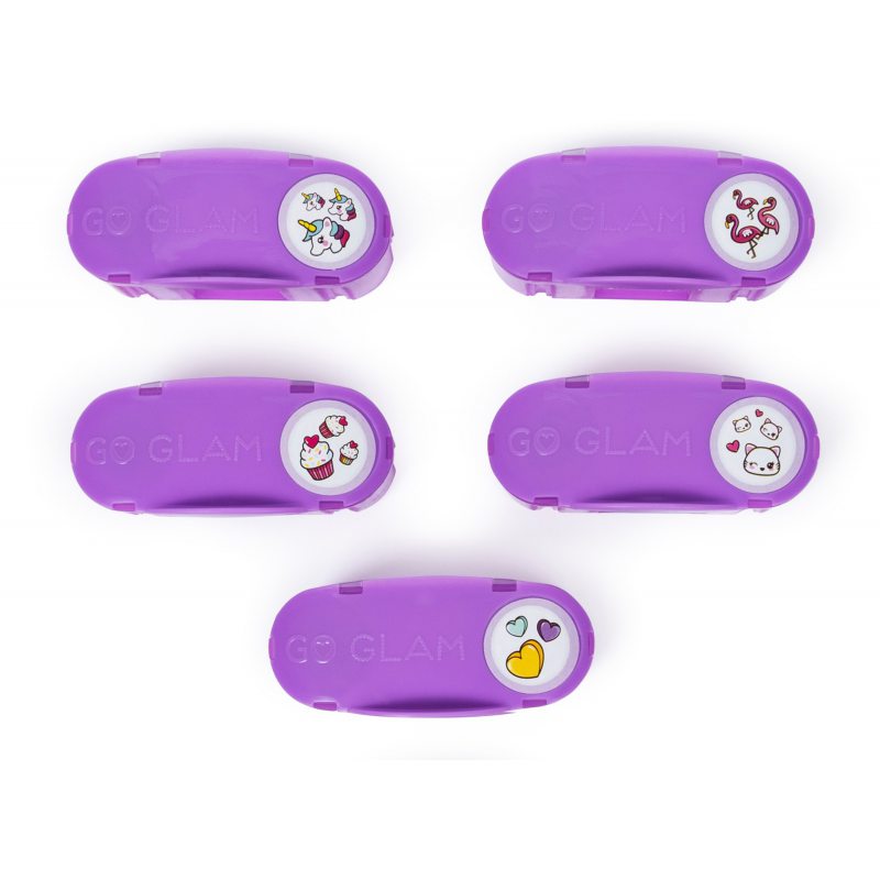 Zestaw do zdobienia paznokci GO GLAM Nail Stamper to wszystko, czego potrzebujesz, aby stworzyć swój manicure! Wystarczy włożyć wybrany wzór do maszyny, pomalować paznokcie, odczekać kilka minut i można rozpocząć stemplowanie, na koniec nakładamy bezbarwną warstwę wierzchnią i gotowe! Stylowe wzory przyklejają się tylko do specjalnych lakierów GO GLAM (w zestawie niebieski i fioletowy). Lakiery są całkowicie nietoksyczne i bezpieczne dla dzieci. Wykończ manicure za pomocą pilnika, który jest przymocowany do kosmetyczki. Paznokcie o jakości salonowej za pomocą GO GLAM Nail Stamper! Dzięki 5 wzorom dziewczęta mogą mieszać i dopasowywać, aby dostosować swoje paznokcie i wyrazić swój indywidualny styl. W zestawie znajdziemy wzór jednorożców, babeczek, flamingów, serc i kotków. Przechowuj kasetki z wzorami, lakiery do paznokci i maszynkę w kosmetyczce GO GLAM i zabierz swój własny salon manicure ze sobą!