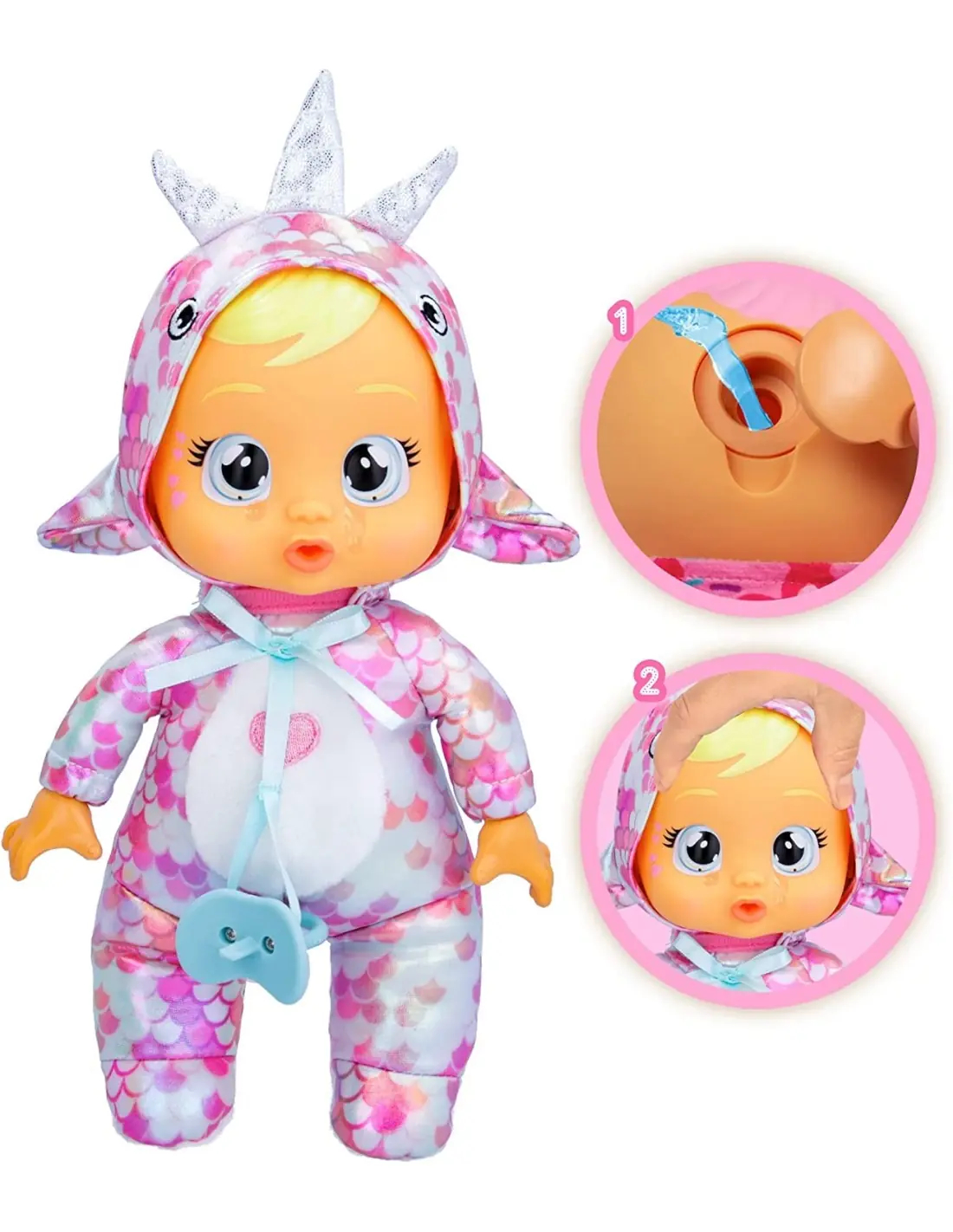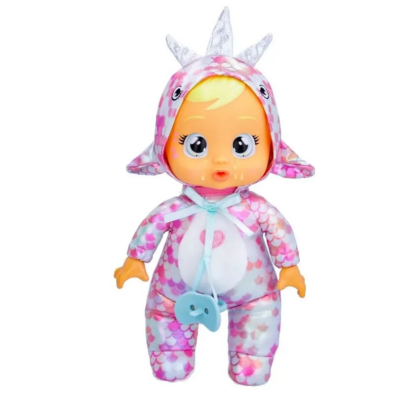 Poznajcie nowego dinozaura Cry Babies Tiny Cuddles! Lalka ubrana jest w różową piżamę z motywem dinozaura i metalicznymi odcieniami, które sprawiają, że Stella jest naprawdę urocza! Gdy naciśniesz jej główkę, z oczu popłyną prawdziwe łzy.