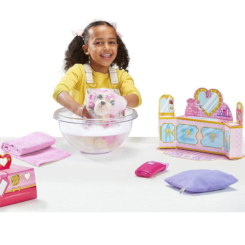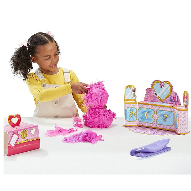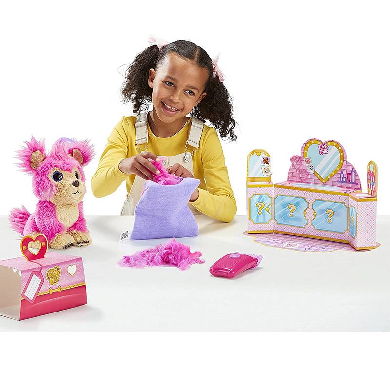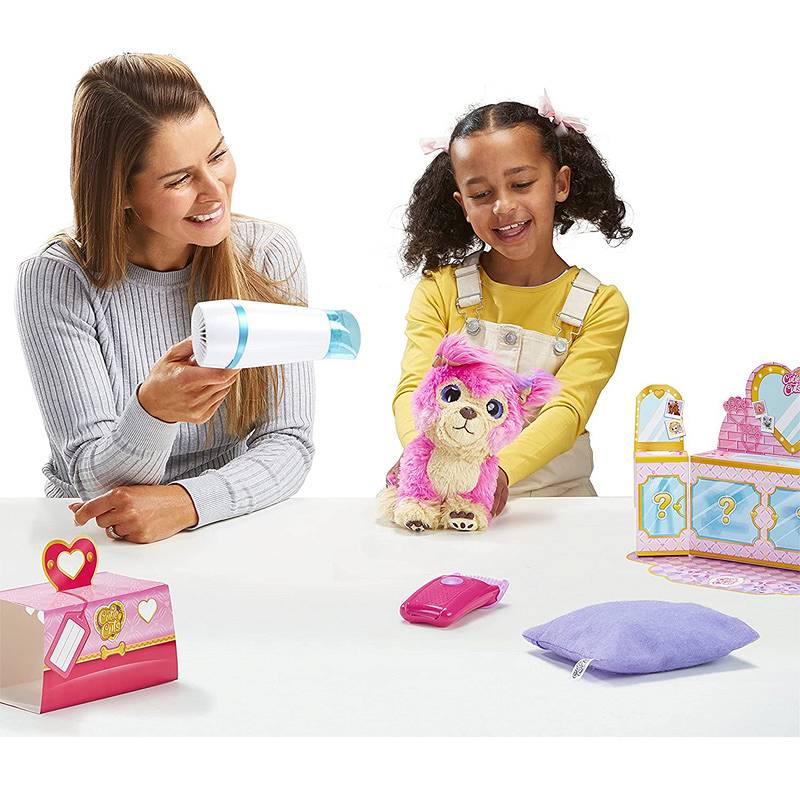 - Wystylizuj swojego szczeniaka! Po umyciu zwierzaka możesz go pielęgnować i stylizować dzięki magicznej metamorfozie w swoim salonie! Rozpakujesz niespodzianki do włosów, które możesz przygotować i uzupełnić, w tym prostownicę, grzebień, obrożę i inne elementy do stylizacji włosów!