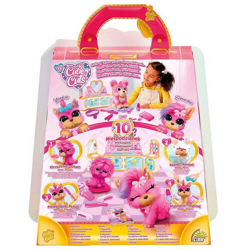 - Cutie Cuts zawiera magiczną maszynkę do strzyżenia, która pomorze "przyciąć" futro Twojego niechlujnego szczeniaka! Gdy przesuwasz maszynkę małymi ruchami w górę po sierści szczeniaka, futro odpada, aby odsłonić prawdziwe oblicze szczeniaka!
