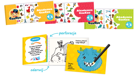 Akademia CzuCzu 4-5 to 240 edukacyjnych zabaw. Zestaw zawiera 3 książeczki, które pomagają dziecku:
