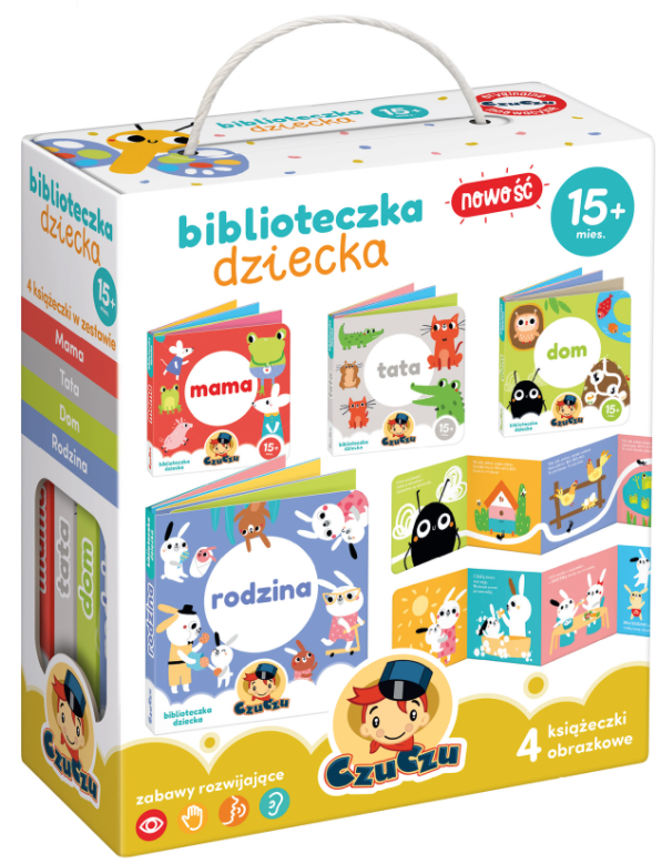 W edukacyjnym zestawie znajdziecie 4 długie książeczki harmonijki stworzone z myślą o dzieciach powyżej pierwszego roku życia: “Mama”, “Tata”, “Dom” i “Rodzina”. Urocze, pełne ciepła i humoru ilustracje przedstawiają tematy bliskie maluchom. Inspirują do oglądania i zabaw w pokazywanie szczegółów. Proste rymowane wierszyki pomagają rozwijać zmysł słuchu i przygotowują do mówienia.