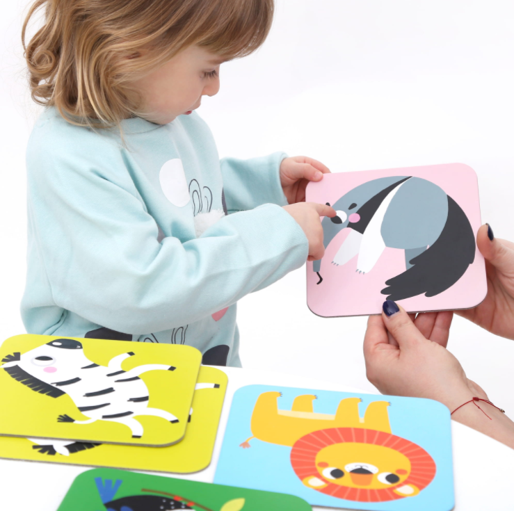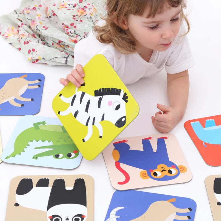 Bawcie się razem na wiele sposobów! Rozłóżcie odkryte elementy i wyszukajcie pary. Możecie to robić na czas. W trudniejszej wersji, odwróćcie je ilustracją do dołu i trenujcie pamięć. Możecie zacząć od mniejszej liczby par i stopniowo zwiększać trudność zabawy. Opowiadajcie o tym, co widać na obrazkach, bawcie się w wydawanie odgłosów zwierząt, nazywajcie kolory i utrwalajcie nazwy zwierząt. A może wymyślicie własną historyjkę o bohaterach ilustracji? Do zestawu dołączyliśmy poradnik pełen pomysłów na edukacyjną zabawę.
