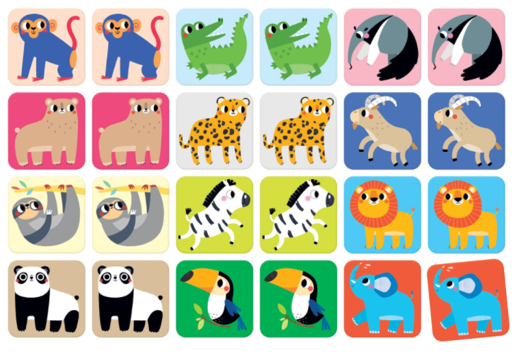Dzikie zwierzęta z różnych zakątków świata zapraszają do wspólnej zabawy. Edukacyjny zestaw zawiera 24 duże i trwałe elementy. Znakomicie sprawdzi się jako pierwsza prosta gra pamięciowa.