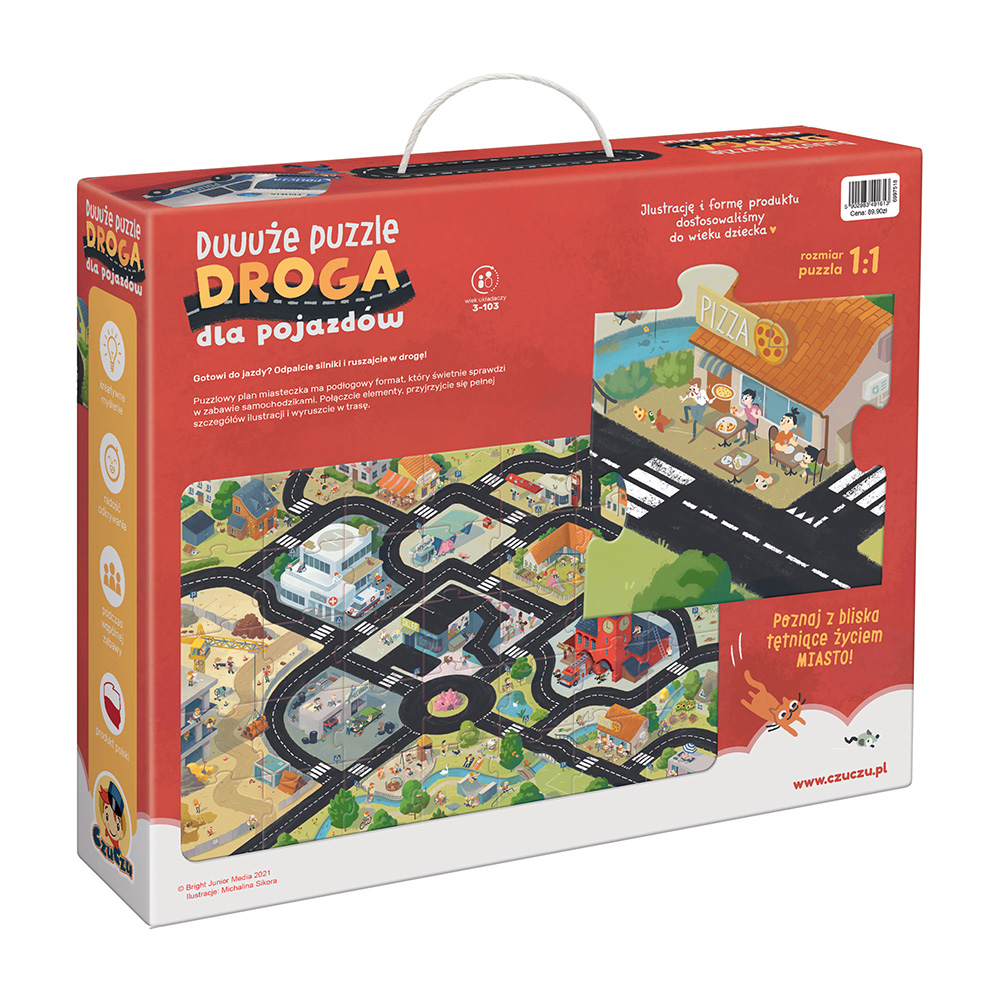 Wyjątkowa cecha: ułożenie puzzli to wstęp do kolejnych zabaw: jeżdżenia samochodzikami, budowania kartonowych lub klockowych domów.