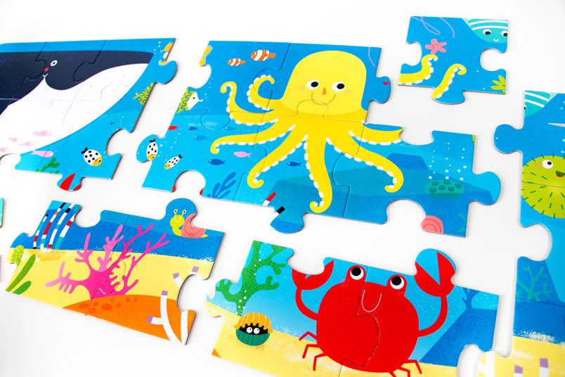 Propozycja dla najmłodszych miłośników puzzli. Małe rączki z łatwością dopasują do siebie duże, wytrzymałe elementy, a piękna, kolorowa grafika zachęci je do zabawy i odkrywania tajemnic podwodnego świata oraz jego mieszkańców. Układanie puzzli rozwija cierpliwość, spostrzegawczość i ciekawość świata. To także znakomity trening małych rączek.