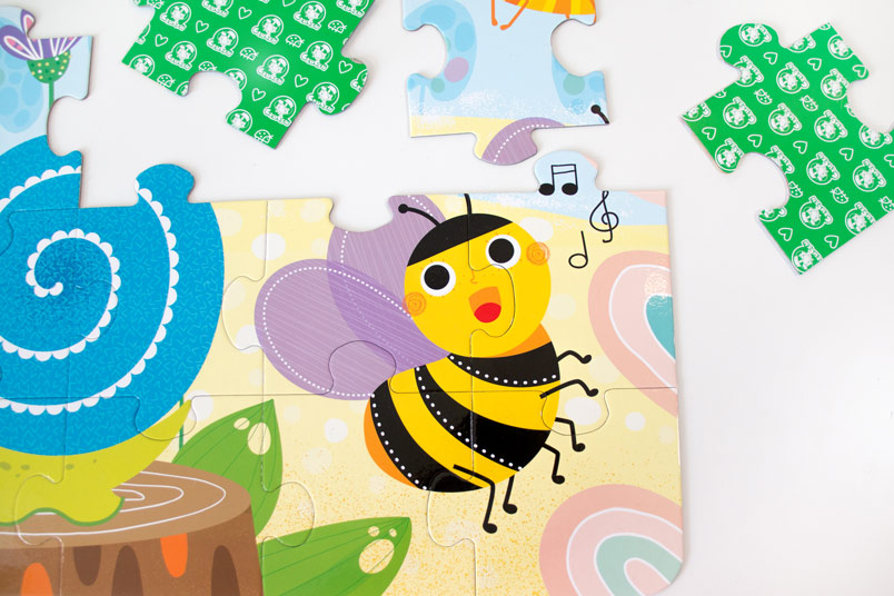 Małe stworzonka bawią się na łące. Bzyk, bzyk! Kto w trawie bzyczy? Co to za robaczki? Gdzie mieszka ślimak? Poznajcie tajemnice łąki i jej mieszkańców. CzuCzu Duuuże puzzle Robaczki są propozycją dla maluchów, które z łatwością dopasują do siebie duże elementy. Piękne, kolorowe obrazki zachęcą do zabawy, podczas której ćwiczy się cierpliwość, spostrzegawczość oraz zdolności manualne. Układanka składa się z 35 elementów i po złożeniu ma wymiar 98 x 68 cm.