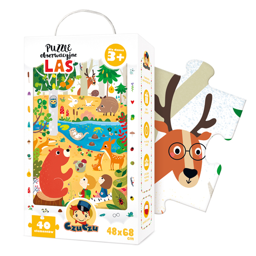 Czuczu Puzzle obserwacyjne Las 33696 Las kryje mnóstwo niespodzianek! Wytężcie wzrok! Gdzie mieszka sowa? Co rośnie na dębie? Kto wygląda z norki w ziemi? W lesie każdy mały przyrodnik znajdzie coś interesującego.