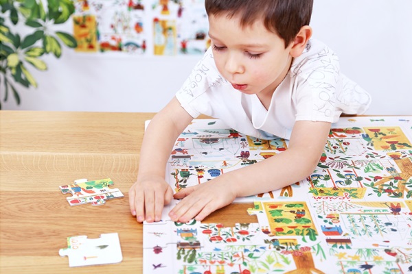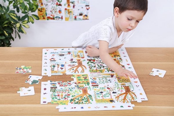 Edukacyjne puzzle CzuCzu z zabawną i pełną zaskakujących szczegółów ilustracją zwracają uwagę dzieci na to, co dzieje się w przyrodzie w ciągu roku.