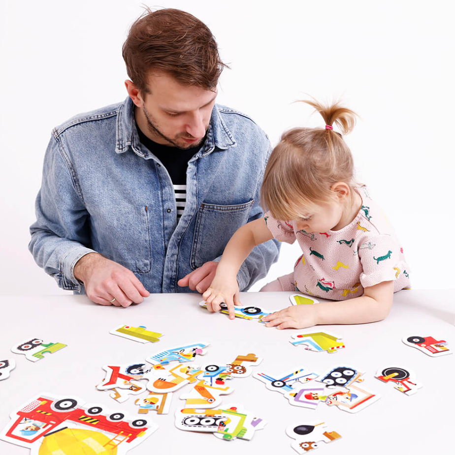 Wyjątkowa cecha: Duże i trwałe elementy są dopasowane do małych rączek. Puzzle zachęcają do zabawy na różne sposoby.