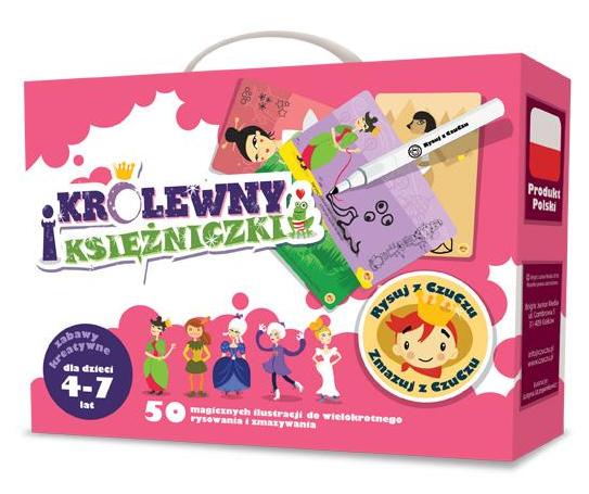 Dla małych i dużych księżniczek przygotowaliśmy zabawę w doborowym towarzystwie. Aż 50 królewien, w tym arabska księżniczka Szeherezada, japońska królewna Lo Czi, egipska królowa Nefertari, a nawet królewna Elfów, czekają na wspólnie spędzone chwile! Odkryj, jak wygląda zwierzątko królewny Hermenegildy i pomóż afrykańskiej księżniczce Naribie odnaleźć drogę na plażę. Narysuj, jaką biżuterię na wieczorny bal założyła księżniczka Lili. Dzięki sucho ścieralnemu pisakowi i ściereczce możesz narysować wszystko, co podpowie wyobraźnia, a zabawa nie ma końca.