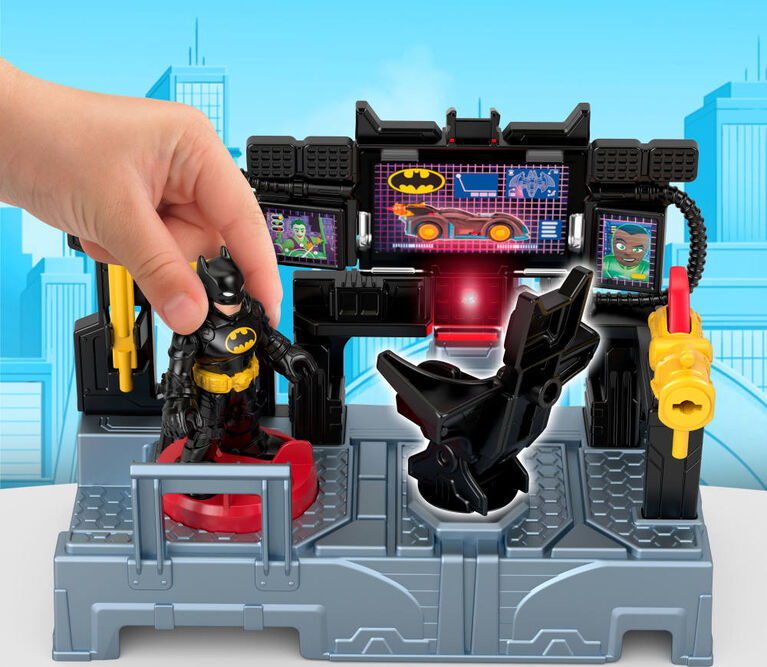Przedszkolaki mogą tworzyć pełne akcji przygody Batmana dzięki temu interaktywnemu zestawowi Bazy Batmana! Baza zawiera obrotowe krzesło i podświetlany komputer Batcomputer, na którym zamaskowany mściciel może otrzymać kolejne zadanie związane z walką z przestępczością. Gdy złoczyńcy sieją zamęt w Gotham City, dzieci mogą przymocować Batwing i wyrzutnię pocisków do figurki Batmana i wysłać go na ratunek!