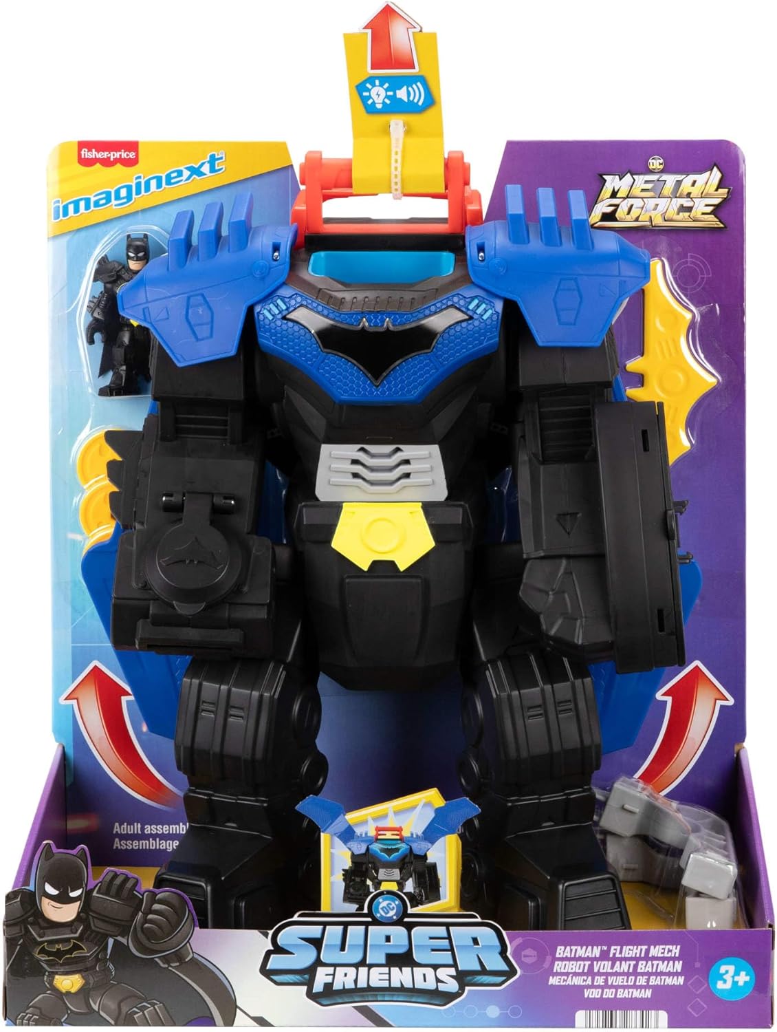 Dzieci mogą tworzyć pełne akcji przygody Batmana dzięki temu interaktywnemu Bojowemu Mechowi Batmana! Na górze mecha znajduje się kokpit dla figurki Batmana, w prawym ramieniu znajduje się wyrzutnia dysków, w lewej schowek, mech posiada także rozkładane skrzydła. Mech posiada efekty dźwiękowe. Gdy złoczyńcy sieją zamęt w Gotham City, Batman wkracza do akcji!