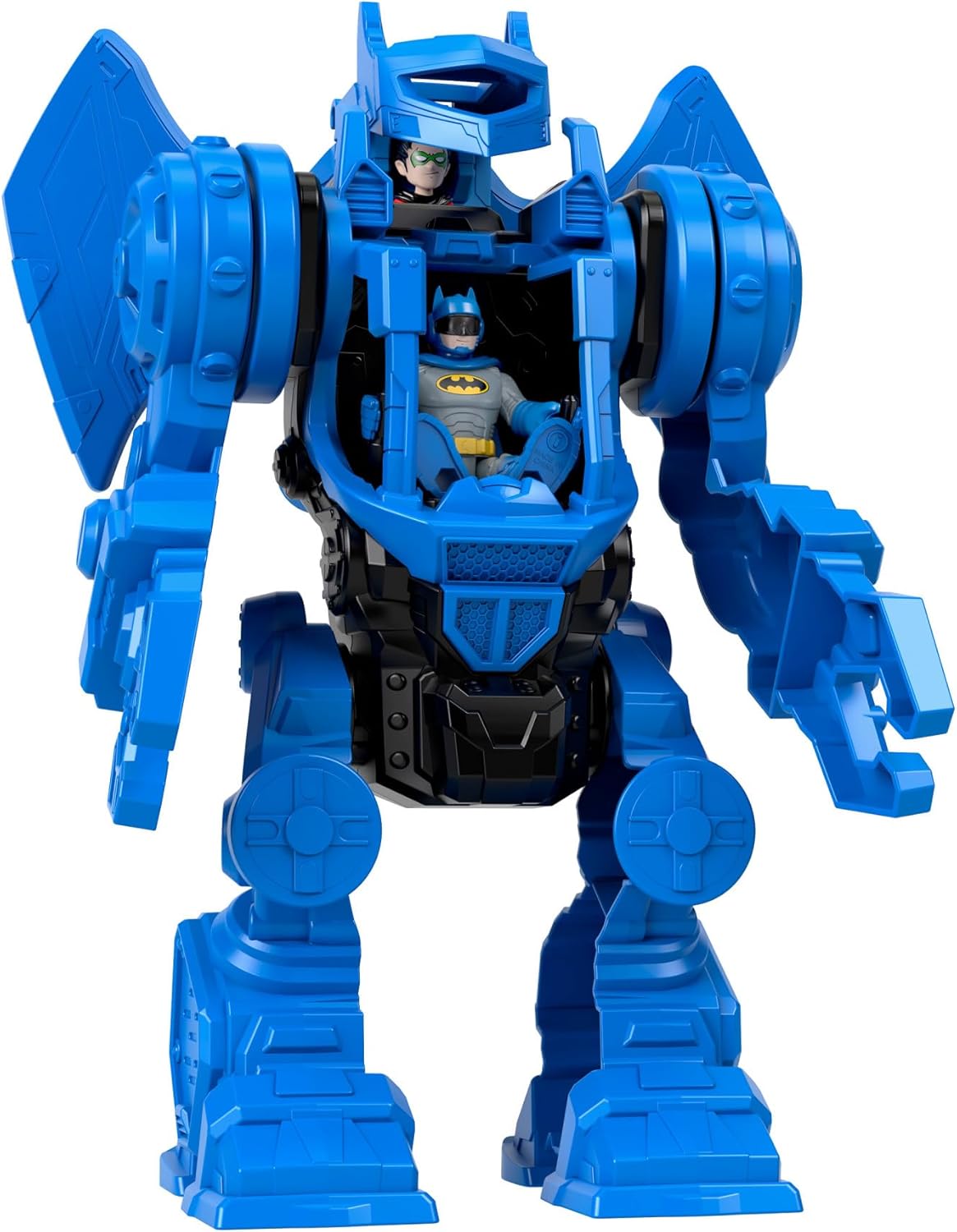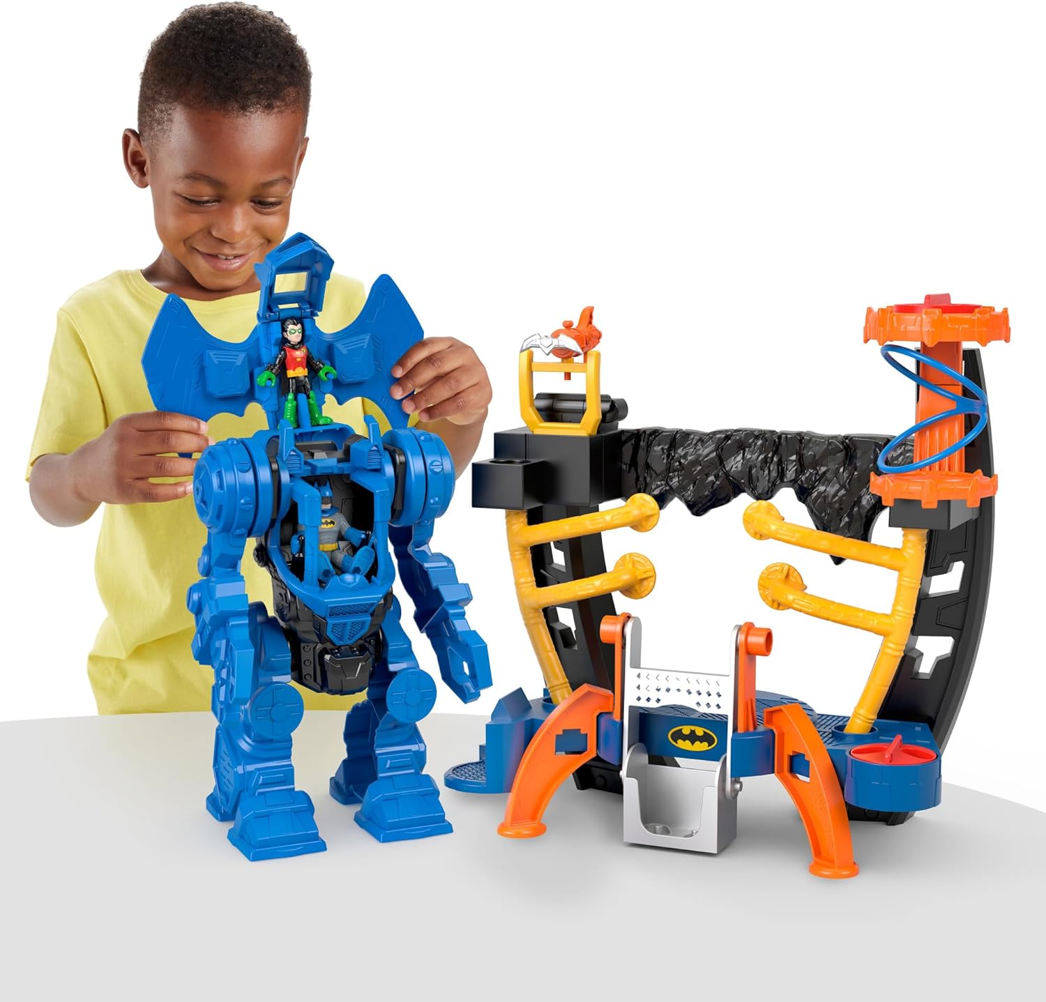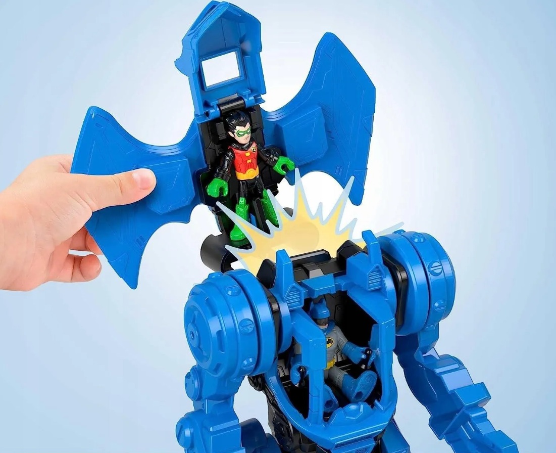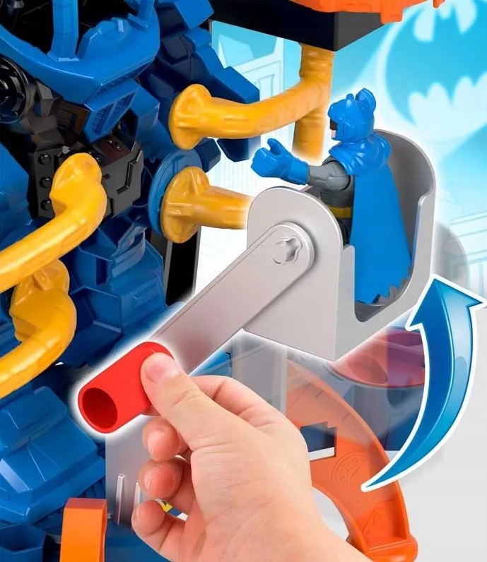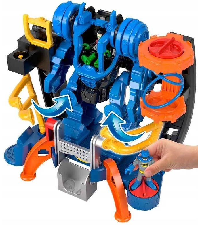 Dzieci mogą tworzyć pełne akcji przygody Batmana dzięki temu fantastycznemu Robocentrum Dowodzenia Batmana! Pośrodku centrum znajduje się kokpit dla figurki Batmana. W zestawie znajduje się także pojazd dla Robina. Poznaj niezwykłe funkcje Zestawu. Gdy złoczyńcy sieją zamęt w Gotham City, Batman wkracza do akcji!