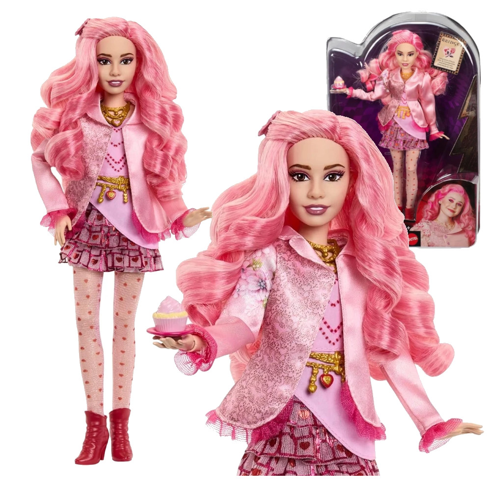 które zachwycą fanów. Jest tak słodka, na jaką wygląda, ubrana w jasnoróżową marynarkę, spódniczkę i pończochy w serduszka. W zestawie z lalką Bridget, młodą Królowej Kier, jest „babeczka”, którą chętnie się podzieli – zupełnie jak w filmie! Dzięki 11 ruchomym punktom ta kolekcjonerska lalka to doskonały wybór do zabawy i jako ozdoba zbiorów.