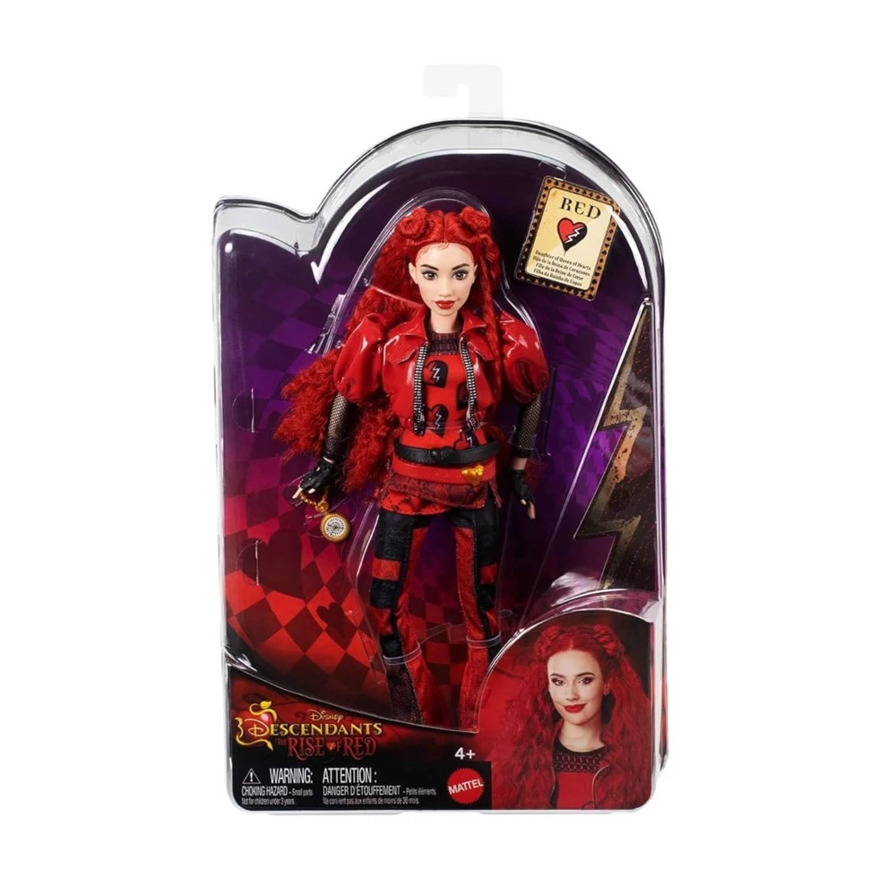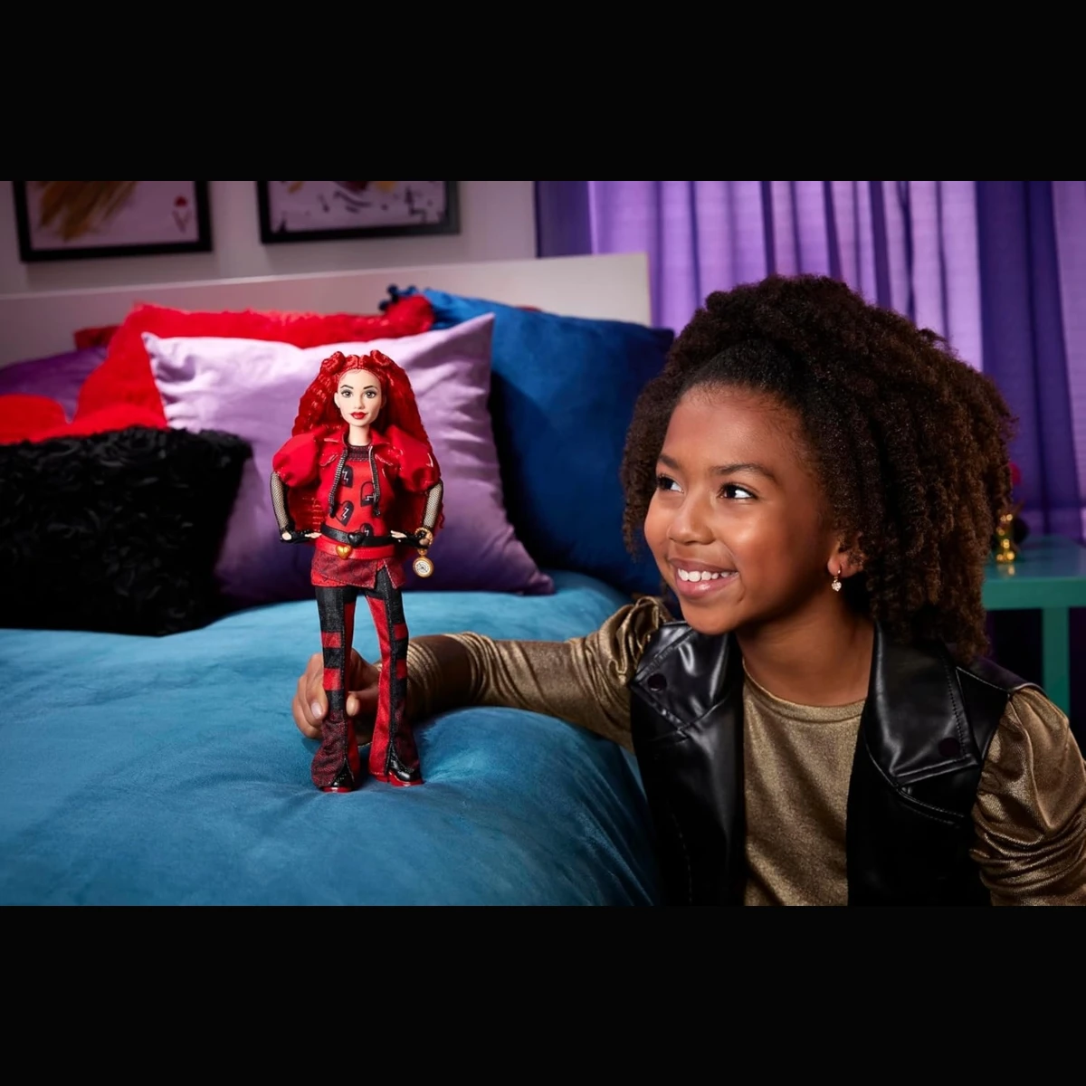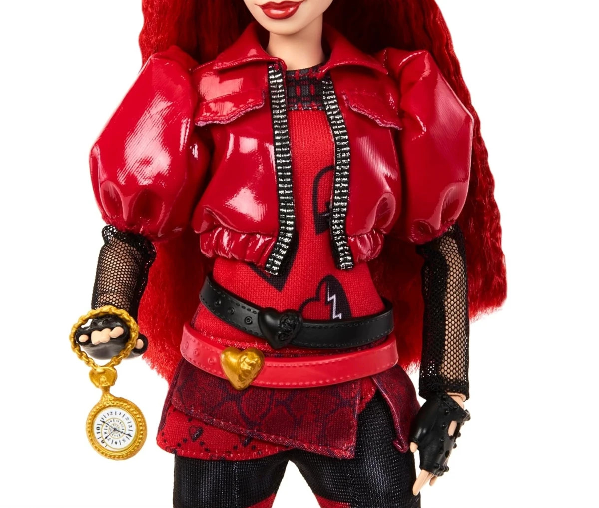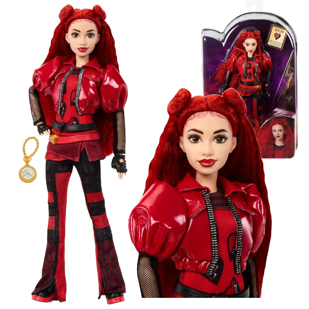 Poczuj ducha buntowniczki z lalką Red, córką Królowej Kier, z 4 części serii „Następcy” Disneya: „Rebelia Red”. Lalka wygląda jak jej lubiąca kłopoty filmowa imienniczka: ma ognisto czerwone loki oraz kultowy strój i akcesoria, które zachwycą fanów. Ubrana w swoją charakterystyczną kurtkę i top ta buntowniczka jest gotowa na przygody. Red, córka Królowej Kier, ma w zestawie zegarek kieszonkowy, dzięki któremu może podróżować w czasie, aby zmienić przeszłość. Dzięki 11 ruchomym punktom ta kolekcjonerska lalka to doskonały wybór do zabawy i jako ozdoba zbiorów.