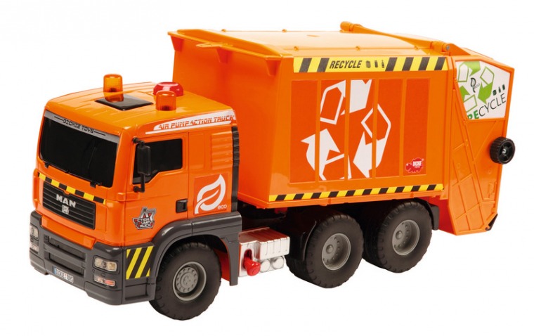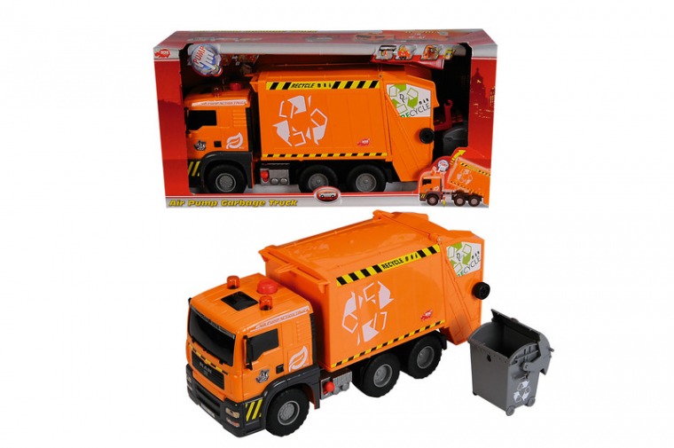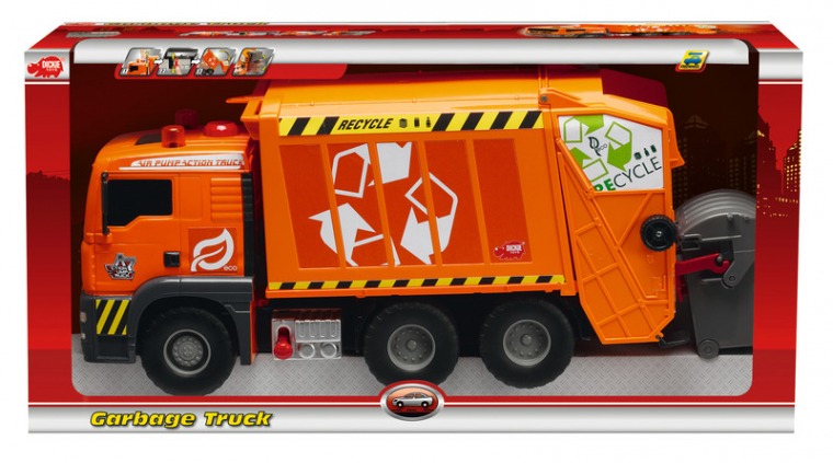 Otwierana tylna klapa śmieciarki pozwala na bieżącą kontrolę stanu wypełnienie kontenera, wyposażona jest w mechanizm wynoszenia mobilnego kosza na śmieci. Pojazd wykonany z wysoką dbałością o szczegóły z wytrzymałych materiałów odpornych na uderzenia co gwarantuje to długą i bezpieczną zabawę.