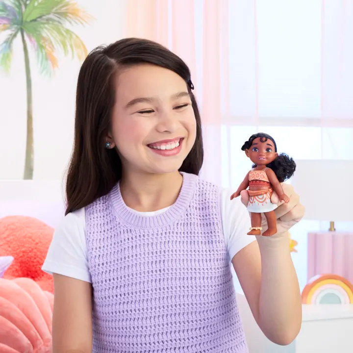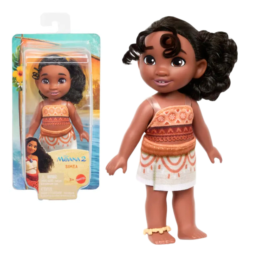 Zainspirowana filmem „Moana 2” studia Disney – kinową kontynuacją oryginalnej produkcji – lalka Simea pozwoli dzieciom z radością wyobrażać sobie, jak odpowiadają na wezwanie oceanu. Simea, pełna energii młodsza siostra Moany, marzy o tym, by zostać nawigatorką, tak jak jej starsza siostra. Lalka Simea, zawsze gotowa do zabawy, ma strój wiernie odwzorowany z filmu i jest wyposażona w zdejmowaną bransoletkę na kostkę! Jej piękne, falujące włosy oraz ruchoma głowa, ręce i nogi idealnie nadają się do układania w różnych pozach lub zabawy.
