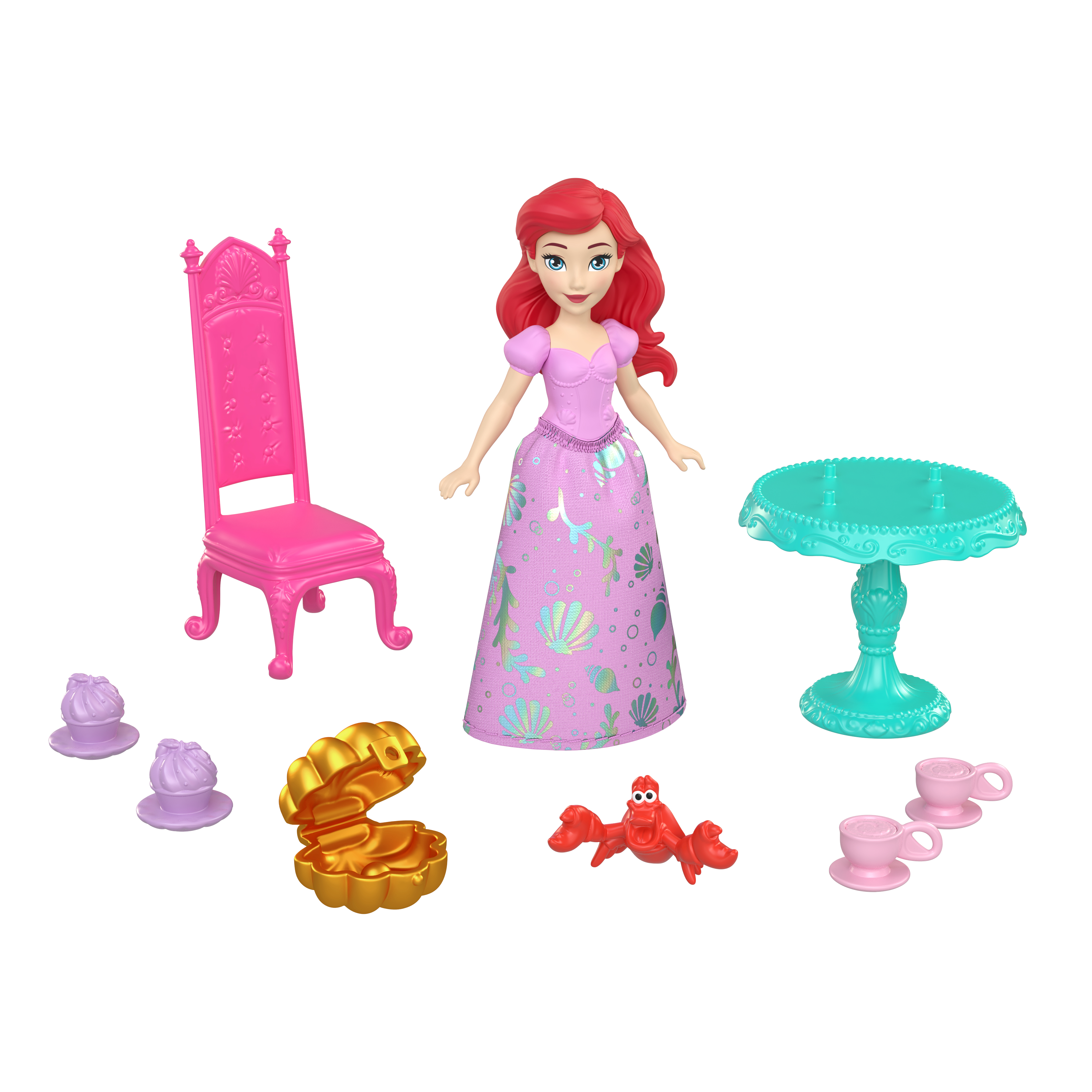 Odtwórz ulubione momenty z filmów Disneya dzięki małej lalce Arielce i pozostałymi elementami do zabawy! Każdy zestaw zawiera ruchomą lalkę Disneya w jej charakterystycznym wyglądzie ze zdejmowaną miękką spódniczką, a także przyjaciół postaci i akcesoria.