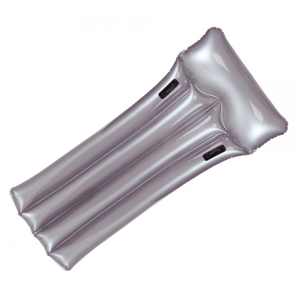 Materac o wyrazistej, spokojnej, srebrnej kolorystyce i wygodnie przylegającej do głowy poduszce, sprawi że poczujesz się odprężony, zrelaksowany podczas swojego letniego urlopu spędzonego nad wodą. Materac jest również bezpieczny dzięki dwóm pompowanym komorom oraz uchwytom do trzymania. Materace plażowe to nieodłączny element, który warto zabrać ze sobą na urlop spędzany nad jeziorem, morzem a nawet na basen.