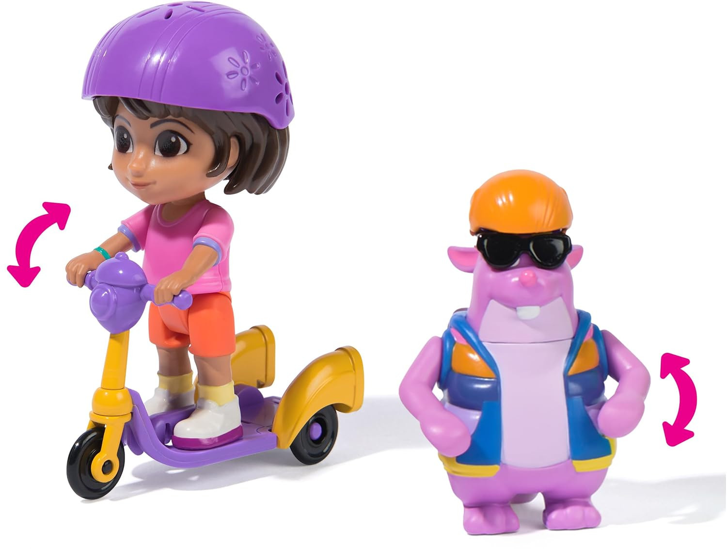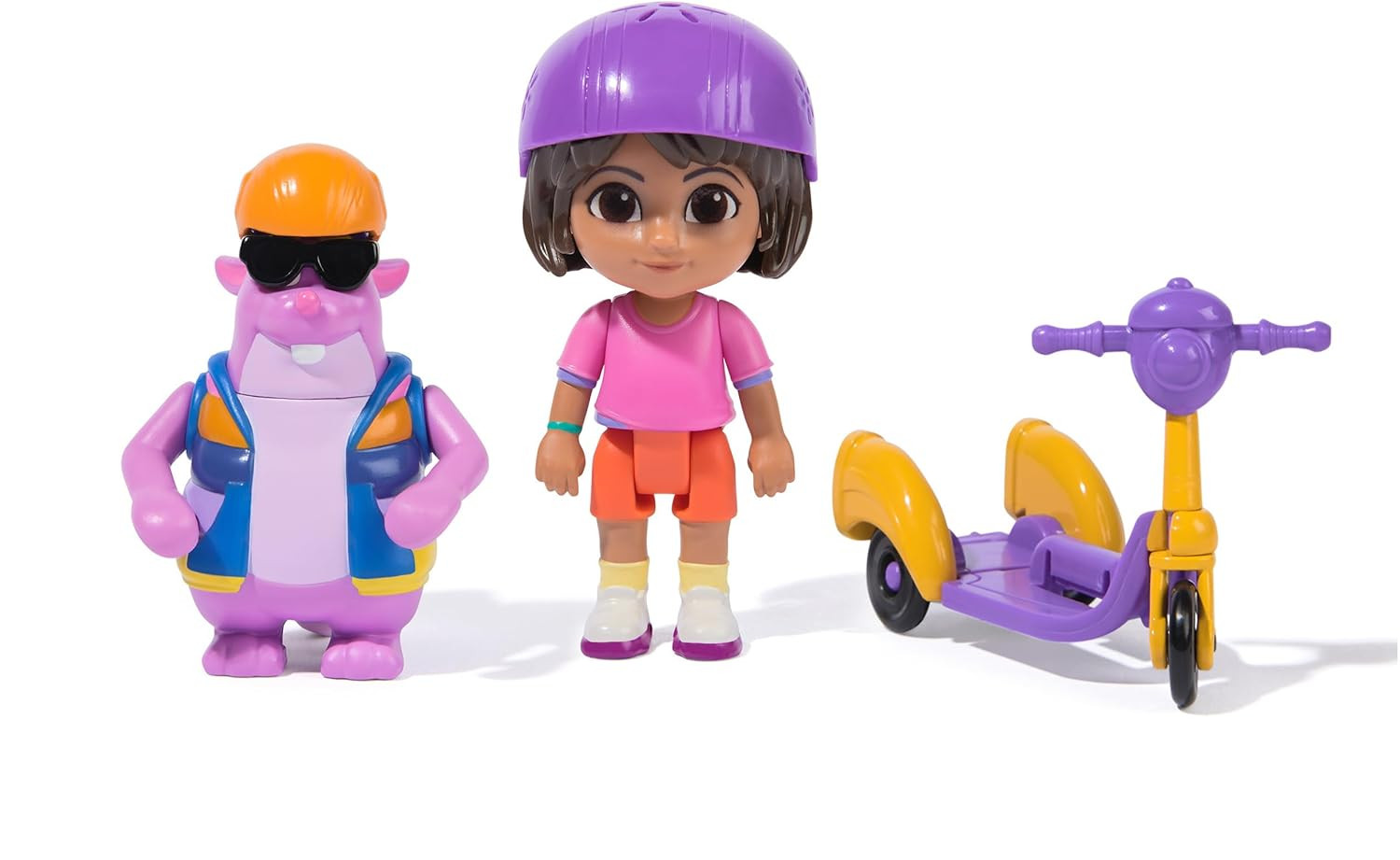 Zestaw zawiera figurki Dory i Tico, z których każda ma kaski i ruchome ramiona. To nie koniec zabawy — dzieci będą cieszyć się emocjami związanymi z pędzeniem Dory i Tico na ogromnej, trójkołowej hulajnodze, tak jak w serialu!