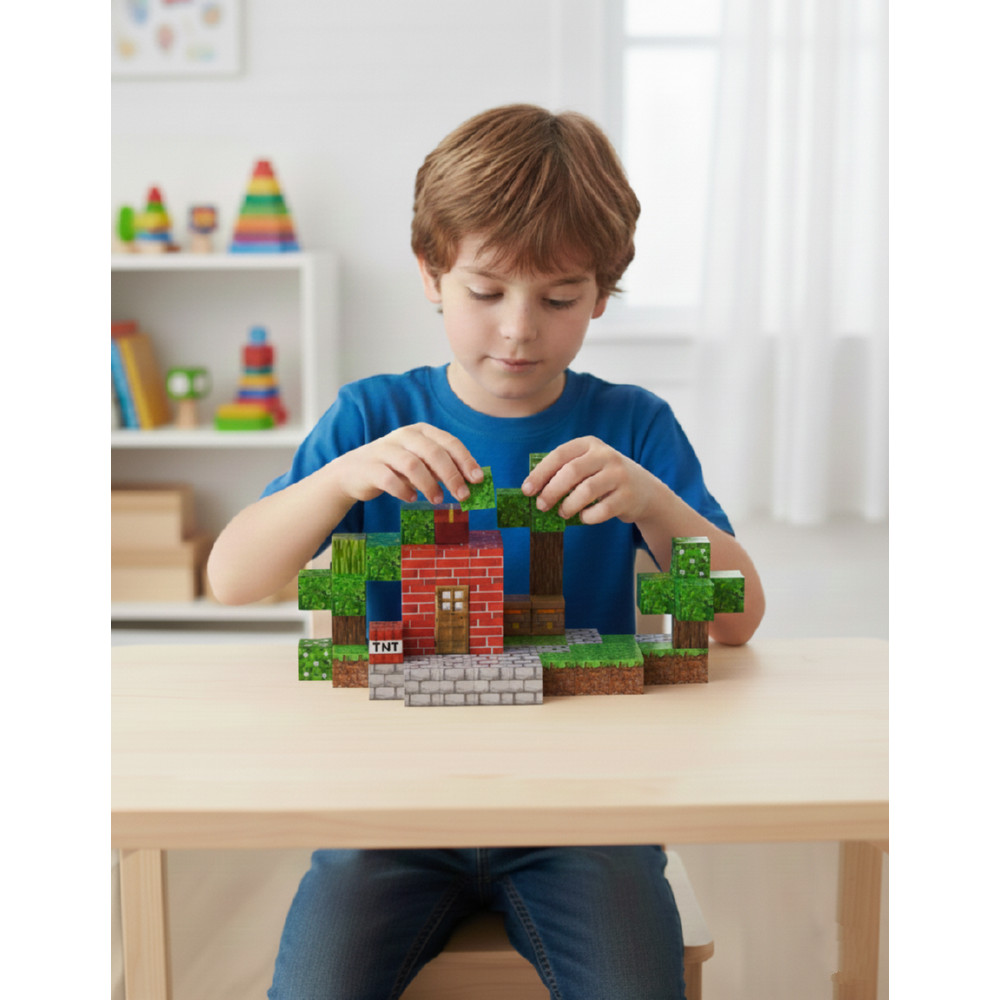Wkrocz do świata kreatywnej zabawy z zestawem klocków magnetycznych Domek z Cegły, który przeniesie Twoje dziecko prosto do klimatu pixelowej przygody inspirowany Minecraftem! Ten zestaw to idealna propozycja dla małych fanów budowania, eksploracji i tworzenia własnych historii. Dzięki magnetycznym klockom łączącym się z każdej strony, budowanie stało się jeszcze prostsze, stabilniejsze i bardziej satysfakcjonujące.