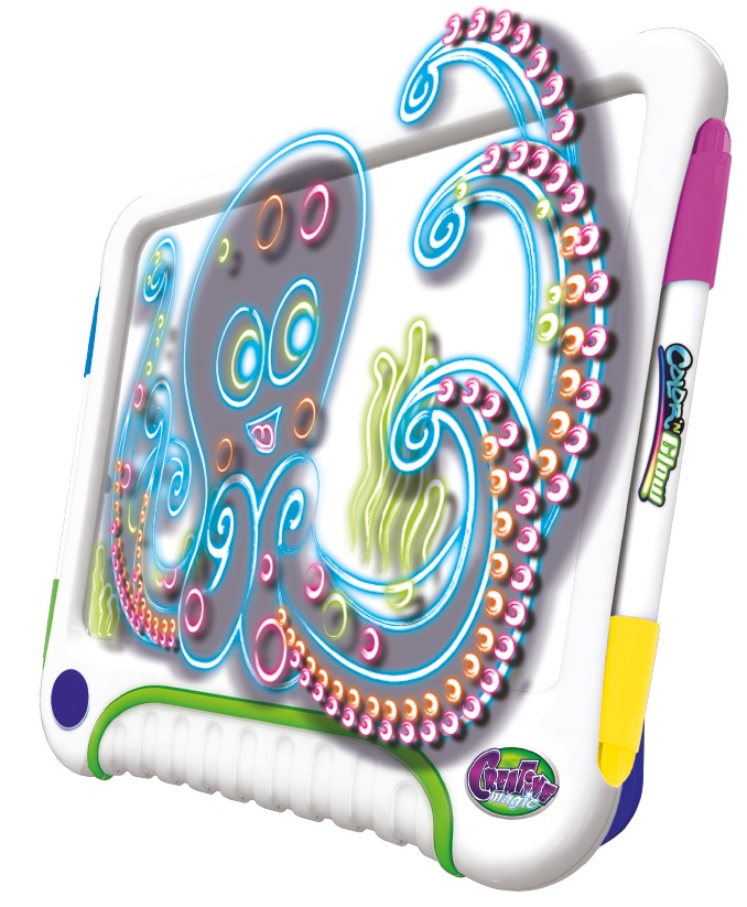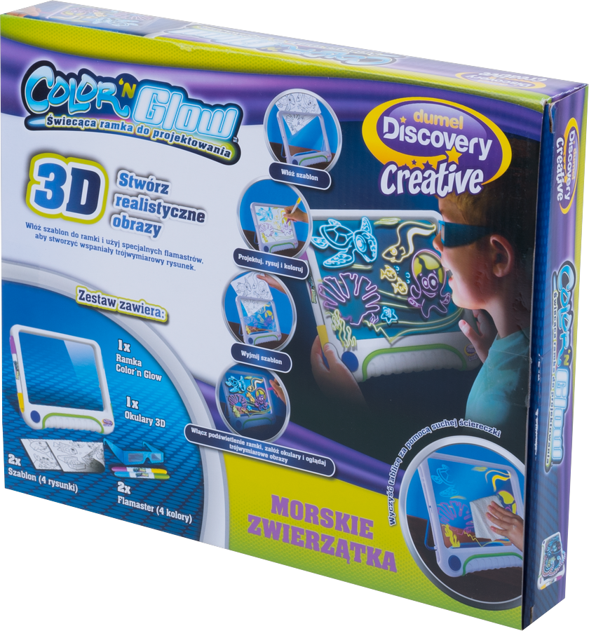 Jeżeli Twoje dziecko wykazuje szczególne zamiłowanie do rysowania to świecąca ramka jest dla niego idealnym rozwiązaniem. Wystarczy, że umieścisz szablon z motywem Kucyków w ramce, pokolorujesz go specjalnymi flamastrami, a potem wyjmiesz go z ramki. Następnie załóż okulary 3D, włącz podświetlanie ramki i oglądaj wykonane przez siebie trójwymiarowe obrazy!