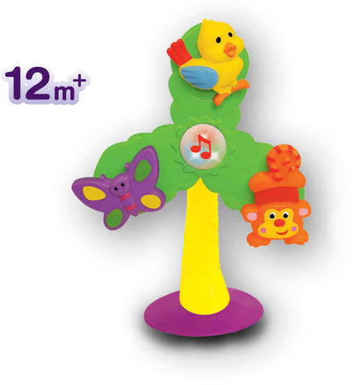 Wirujące drzewko to wesoła zabawka z przyssawką, która umili czas niejednemu maluszkowi. Kiedy dziecko zakręci gałązkami drzewka lub naciśnie na kolorową nutkę, usłyszy zabawną muzykę i zobaczy migające światełka.