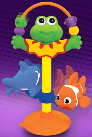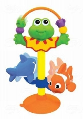 Wodni Przyjaciele to wesoła zabawka z przyssawką, która umili czas niejednemu maluszkowi. Kiedy dziecko zakręci rekinem i rybką, usłyszy różne melodie i zabawne dźwięki. Przekręcając żabkę, usłyszy terkoczący dźwięk.