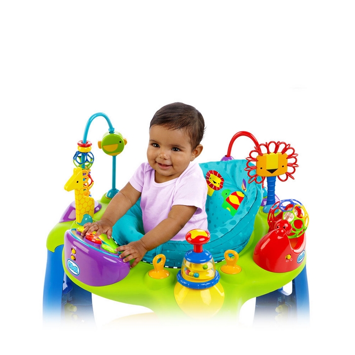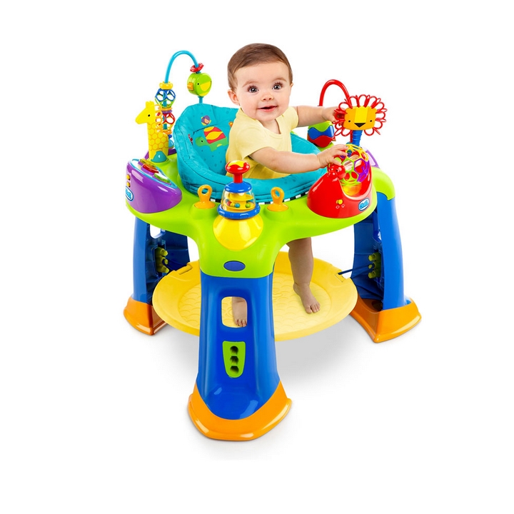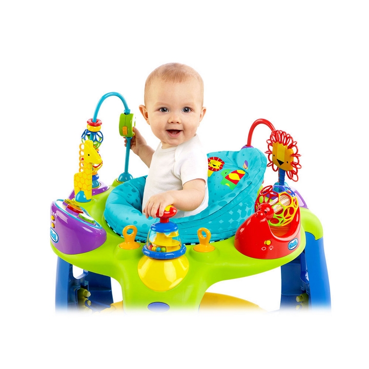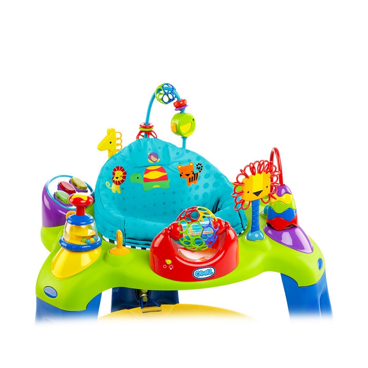 Rewelacyjne krzesełko zajmie każdego maluszka zabawą na długi czas, pobudzając jego wyobraźnię. Siedzisko obraca się o 360 stopni, dzięki czemu dziecko ma dostęp do wszystkich zamieszczonych na nim zabawek. Krzesełko posiada wiele odrębnych funkcji, tj. panel muzyczny, który wygrywa wesołe melodie i dźwięki, obrotowa klepsydra, która uruchamia światełka oraz wiele innych zabawek, które zachęcą dziecko do zabawy. Krzesełko posiada 3-stopniową regulację (regulacja platformy pod nóżkami), dzięki czemu zabawka „rośnie razem z dzieckiem”. Pod stopami malucha znajduje się powierzchnia, która doskonale sprawdza się podczas skakania. Wysokie oparcie zapewni dziecku stabilizację podczas zabawy.