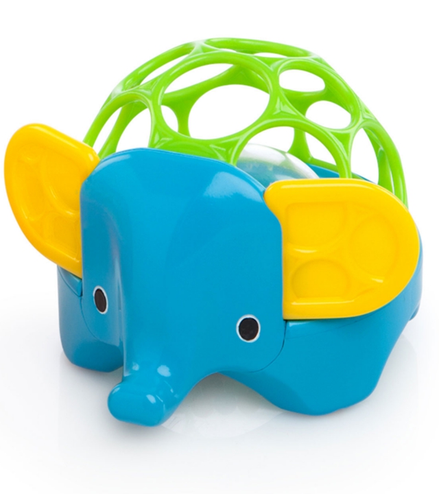 Gryzak + grzechotka + zabawka = Oball. Łatwy do zgniatania, rzucania, chwytania, gryzienia oraz kopania.