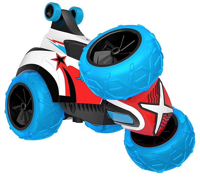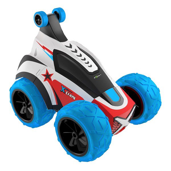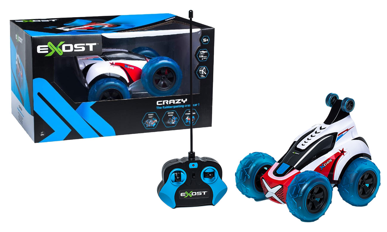Silverlit terenowy Exost Crazy z pilotem jest gotowy do akcji! Samochód poradzi sobie z każdą przeszkodą i zachwyci swoimi możliwościami. Exost Crazy znany jest ze swoich imponujących i zwariowanych figur i obrotów. Przeznaczony do użytku zarówno wewnątrz budynków, jak i do zabaw na świeżym powietrzu. Silverlit samochód terenowy Exost Crazy z pilotem wykonany został w skali 1:18. Nawet przy skręconym w lewo lub w prawo przednim kole, nadal pozostaje stabilny, a nawet potrafi się poruszać. Exost Crazy potrafi także wykonać obrót wokół własnej osi (360°). Szalone wyścigi z ekstremalnymi skrętami nie będą już tylko marzeniem małych fanów motoryzacji, lecz rzeczywistą zabawą! Samochód sterowany jest za pomocą dołączonego pilota radiowego. Maksymalna prędkość dla Exost Crazy to 6 km/h, zasięg 15 metrów, czas działania 20 minut.