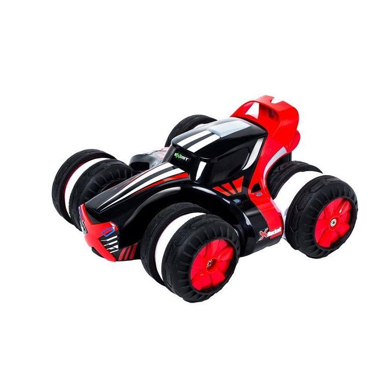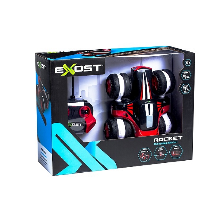 Rocket to czterokołowy samochód o futurystycznym, sportowym designie. Dzięki masywnym obrotowym kołom z bieżnikami niestraszne mu nierówne drogi! Pojazd doskonale nadaje się do zabawy w domu. Proste i intuicyjne sterowanie za pomocą pilota gwarantuje świetną i precyzyjną zabawę. A dzięki obrotowym kołom o 180 stopni auto może poruszać się w bok jak krab. Dołączony do zestawu pilot odpowiada za sterowanie samochodem, a jego duży zasięg (15 m) gwarantuje ekscytującą zabawę w tempie 8 km/h!