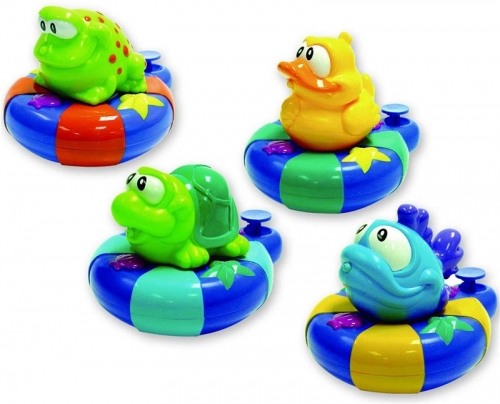 Tryskające Zwierzątko to zabawka występuję w czterech różnych postaciach: żabka, rybka, żółw i kaczka. Tryskające zwierzątko to prawdziwa zabawa podczas kąpieli. Wystarczy nacisnąć przycisk na tylnej części koła ratunkowego żeby ze zwierzątka wystrzelił strumień wody.kaczka.