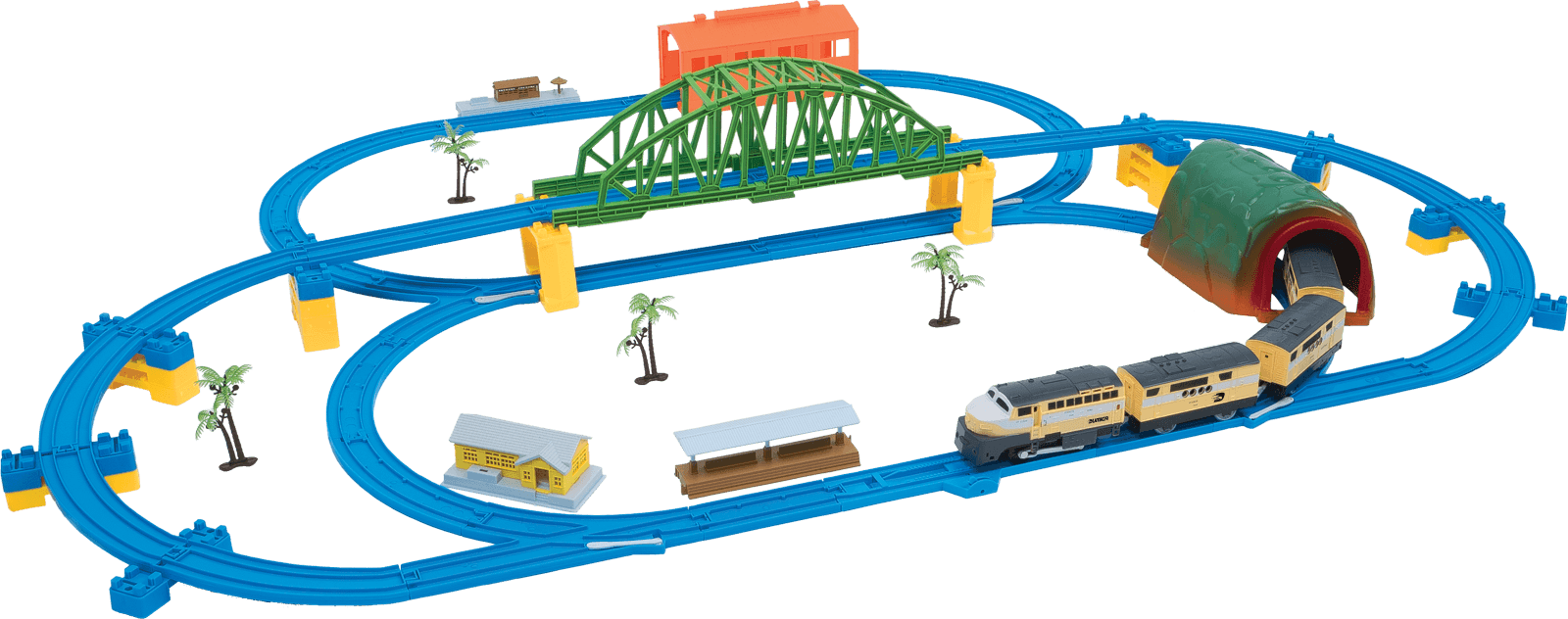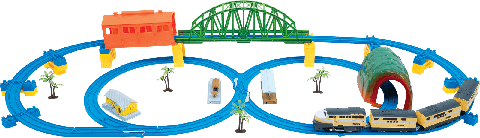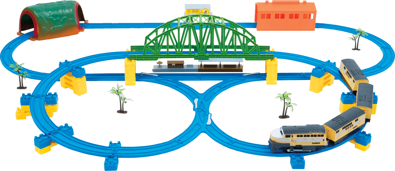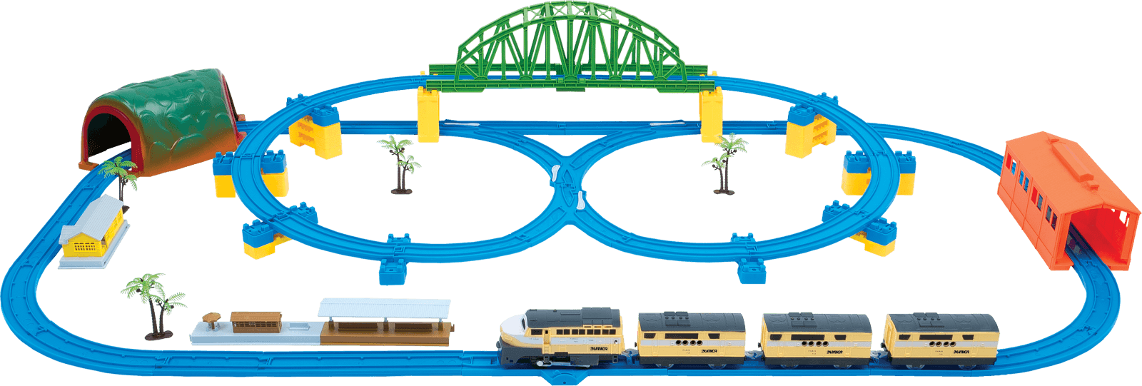 Zestaw Deluxe D2 pozwala na zbudowanie różnych torów! Pomóż pokonać lokomotywie tunele, długi most oraz liczne, niebezpieczne zakręty. Dzięki wielu elementom, istnieje możliwość układania różnych kombinacji zgodnych z instrukcją lub według własnego pomysłu. Różnorodność i mnogość akcesoriów pozwolą Ci na dowolną zmianę scenerii.