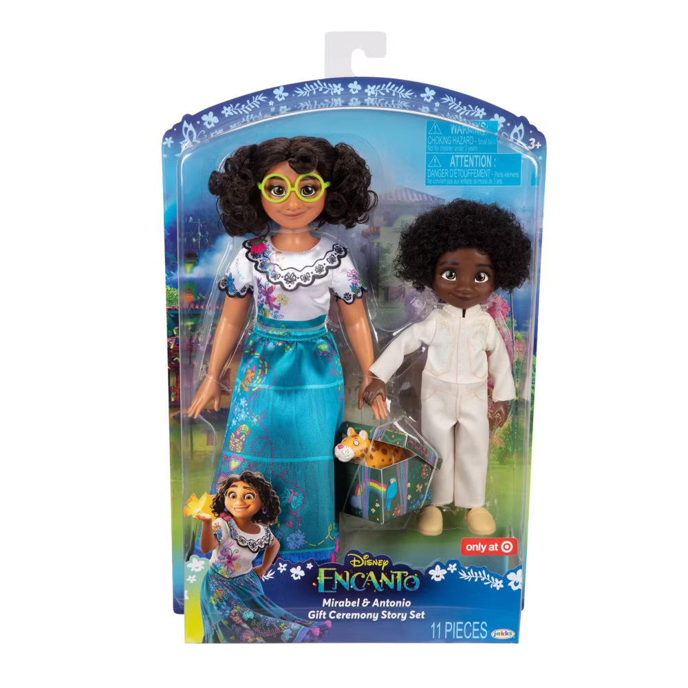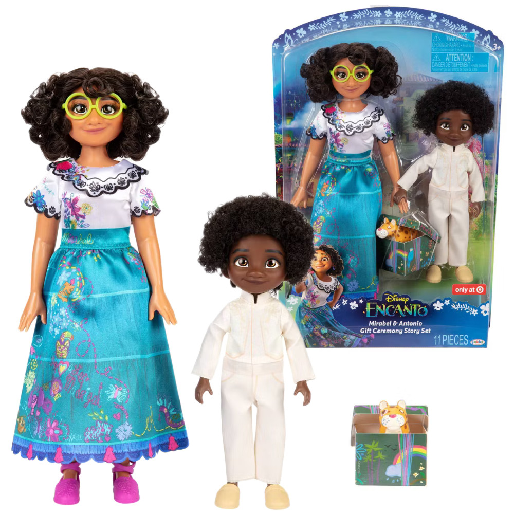 Odtwórz uroczą scenę z filmu Disneya „Encanto”, w której Mirabel wręcza swojemu kuzynowi Antonio ręcznie wykonaną pluszową jaguarę przed jego ceremonią magicznych drzwi, dzięki zestawowi Mirabel & Antonio Gift Ceremony Story Set! Mirabel i Antonio, najbliżsi kuzyni, są zgranym duetem, który łączy szczególna więź przyjaźni. Lalki mają na sobie charakterystyczne stroje i akcesoria z filmu!