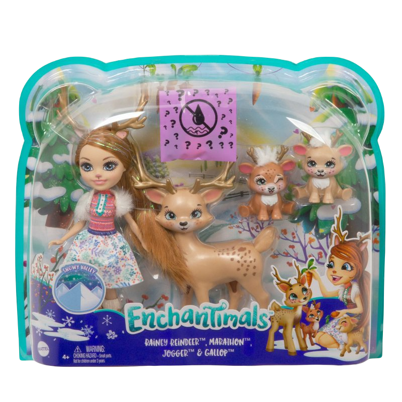 Enchantimals Rodzina Reniferów Lalka Rainey Reindeer i trzy reniferki Marathon, Jogger i Gallop GNP17