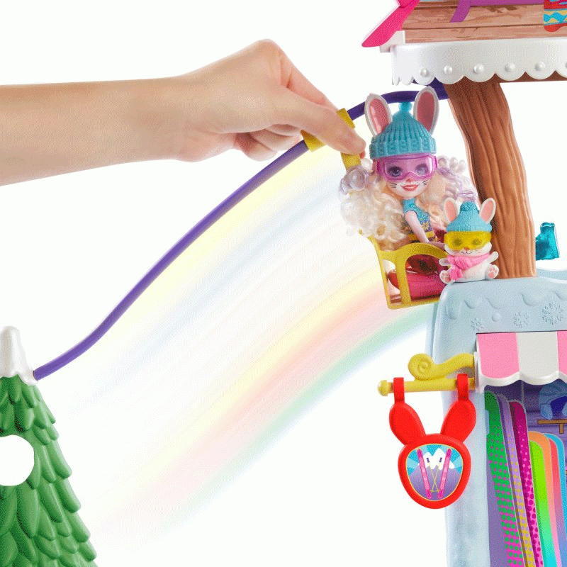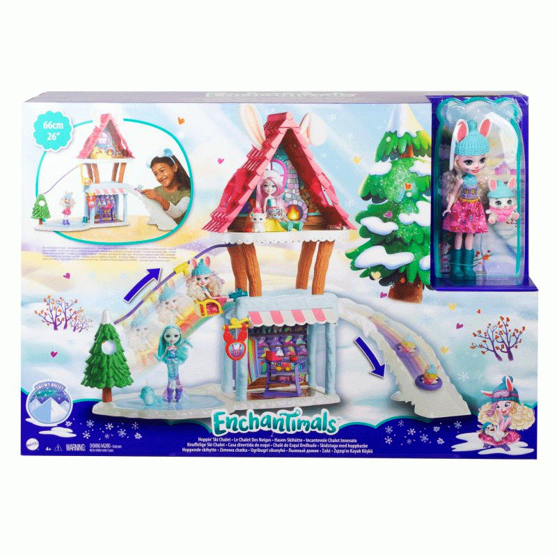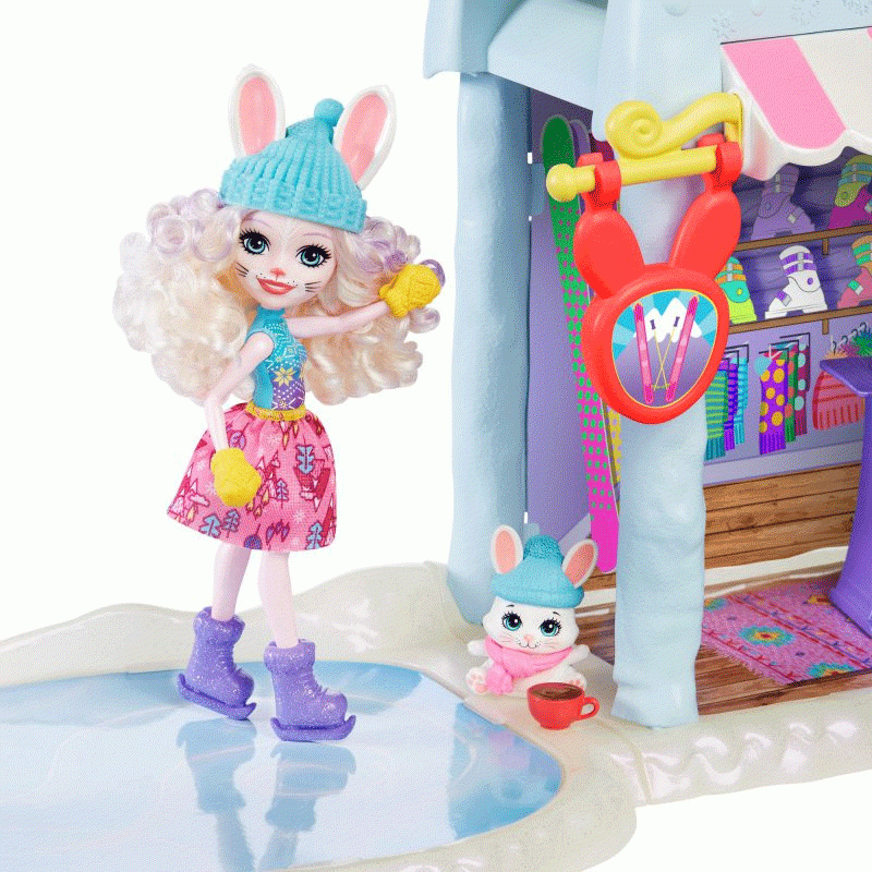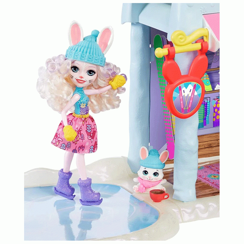 Zorganizuj wyjątkowy dzień sportów zimowych z lalką Bevy Bunny i jej przyjacielem króliczkiem Jump! W zestawie znajduje się aż 5 obszarów zabawy i ponad 10 akcesoriów. Wstąp do sklepu narciarskiego, by wypożyczyć zimowe akcesoria, takie jak łyżwy, gogle, sanki i inne potrzebne rzeczy. Wjedź do góry wyciągiem, a potem śmigaj w dół zbocza, albo ruszaj na zamarznięte jezioro, po którym możesz kręcić piruety. Gdy już będziesz zmęczony, zrelaksuj się na wygodnej kanapie na przytulnym poddaszu i rozgrzej kubkiem kakao!