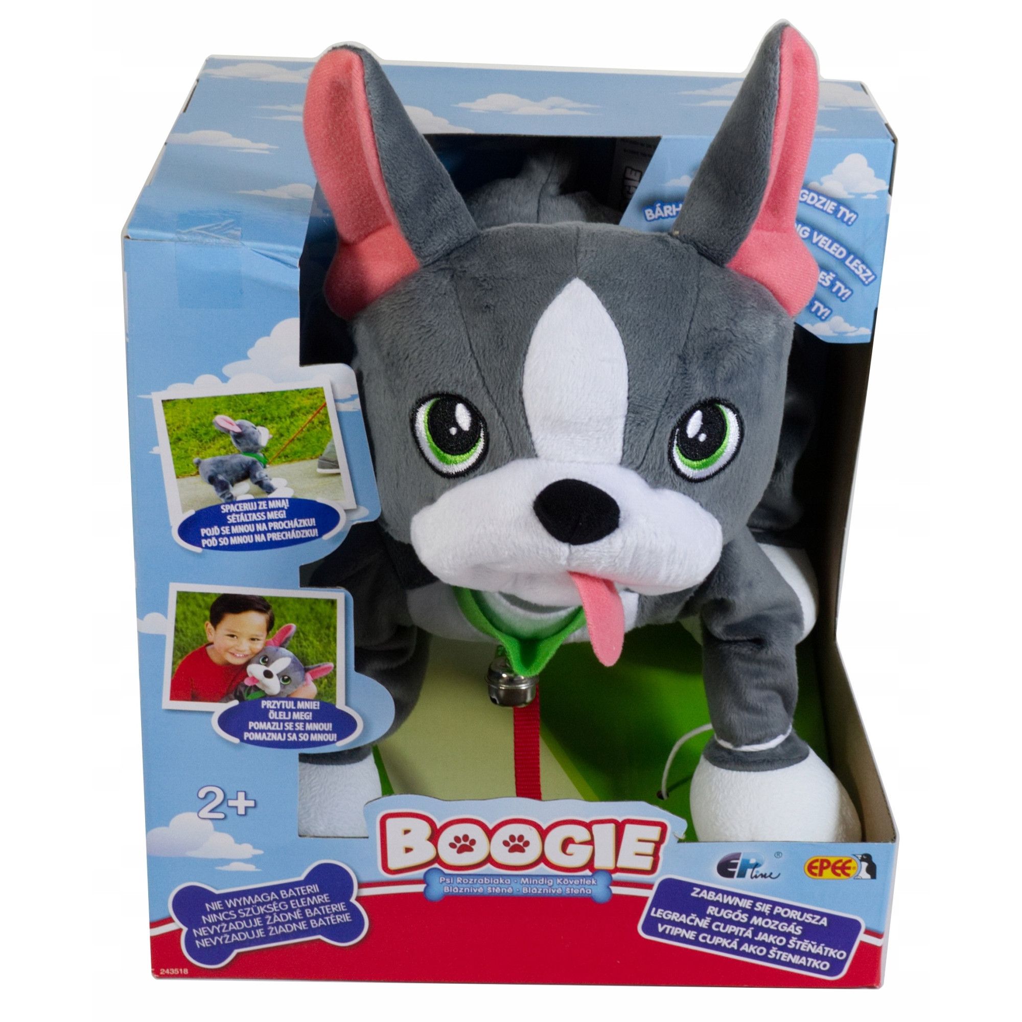 Epee Boogie Psi rozrabiaka kundelek szary 02068-23210 wspaniała zabawka dla wszystkich dzieci, które pragną mieć swojego psiego przyjaciela. Boogie zmieni każdą wspólnie spędzoną chwilę we wspaniałą przygodę. Boogie dzięki wspaniałej technologi może spacerować, biegać, a nawet wykonywać sztuczki umożliwiają mu to specjalne sprężyny w łapkach. Boogie ma bardzo miękki tułów i główkę wiec można go do woli przytulać. Zabierz go ze sobą na spacer i pokochaj jak prawdziwego szczeniaczka.