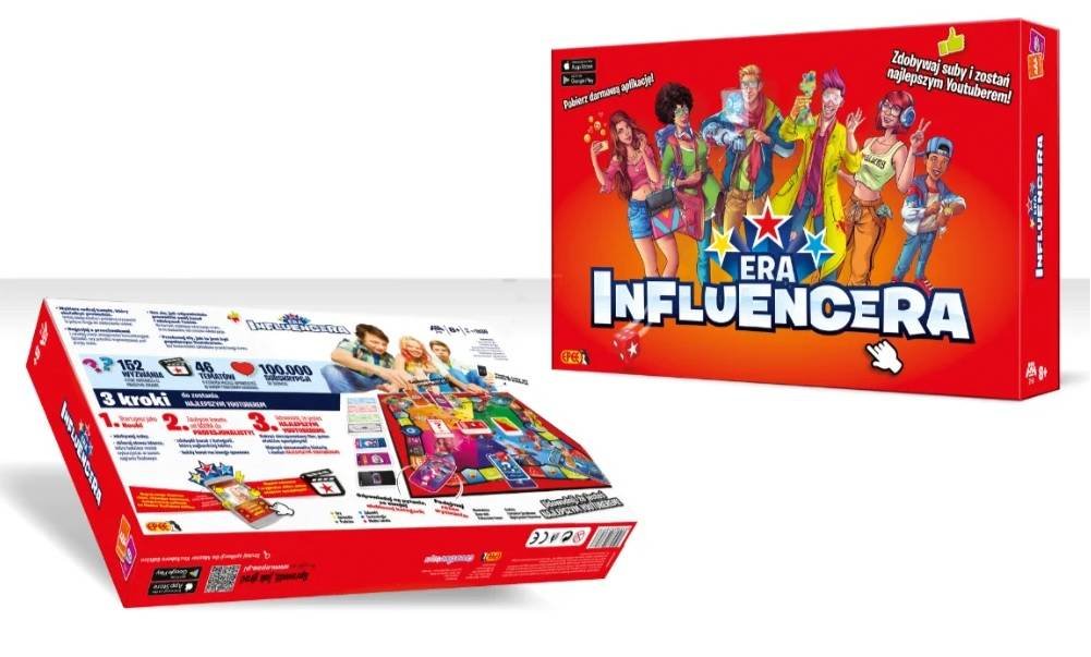 Era Influencera to wciągająca gra planszowa, idealnie wpisująca się w zainteresowania dzieci i młodzieży! Interesują Cię podróże, zabawki, moda, gry, technologia czy komedia? Wciel się w rolę prawdziwego Youtubera i wybierz rodzaj kanału, jaki chcałbyś prowadzić. Na drodze do tytułu NAJLEPSZEGO YOUTUBERA , czeka na Ciebie aż: 152 ciekawych wyzwań , quizów i zadań oraz 46 zupełnie różnych tematów na FINAŁOWE NAGRANIE!