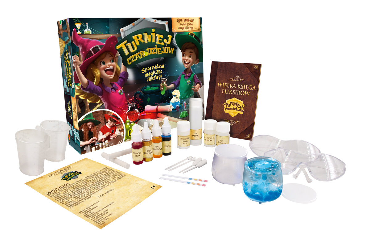 Turniej Czarodziejów to gra, która w przemyślany sposób łączy walory edukacyjne z ekscytującym światem magii. Każdy eliksir, który znajduje się w Wielkiej Księdze Eliksirów, to jednocześnie ciekawe doświadczenie chemiczne, wyjaśniające, jak działają na siebie różne substancje i materiały.