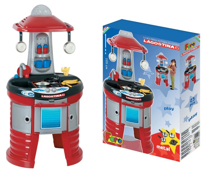Wysoka kuchenka włoskiej firmy Faro. Jako jeda z niewielu w grupie kuchenek ma na wyposażeniu metalowe naczynia. Zestaw posiada piekarnik, zlewozmywak, okap oraz czteropalnikową kuchenkę. Kuchnia posiada otwierany piekarnik i zamykane schowki po bokach.